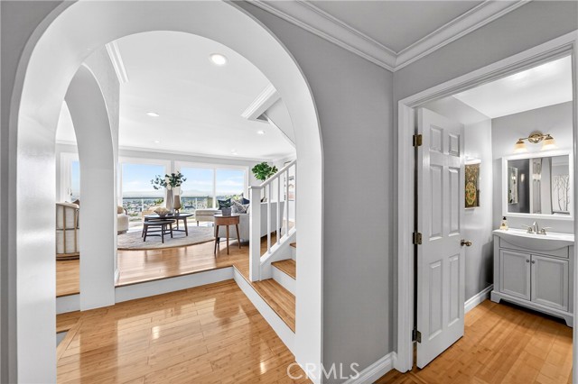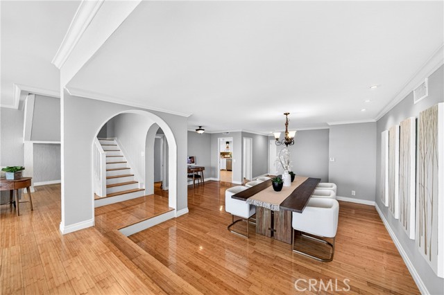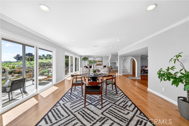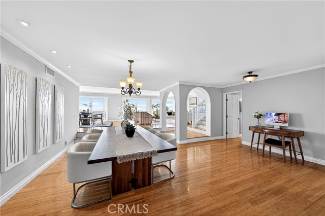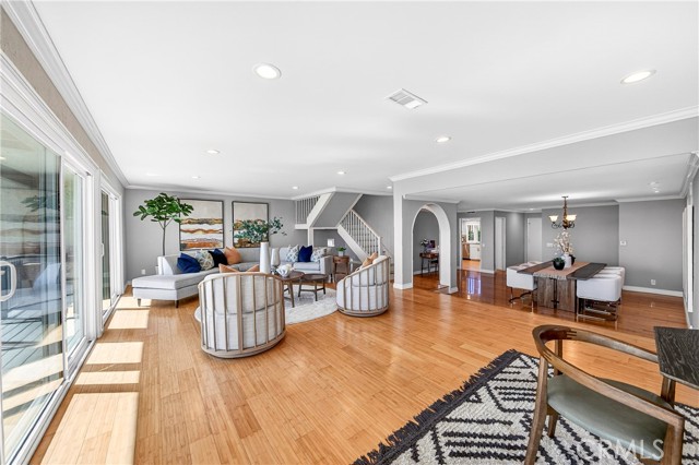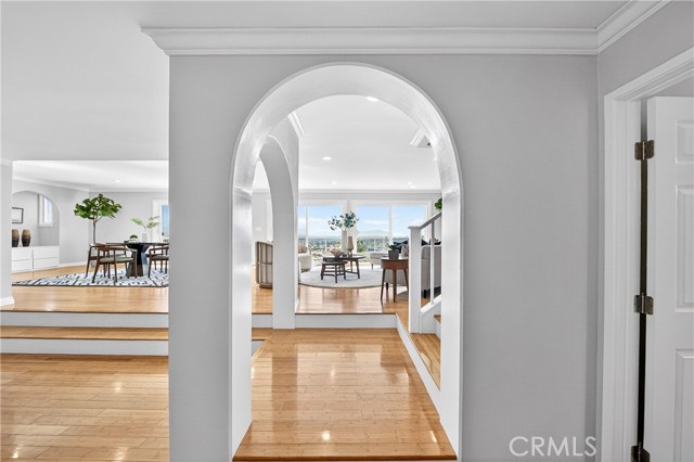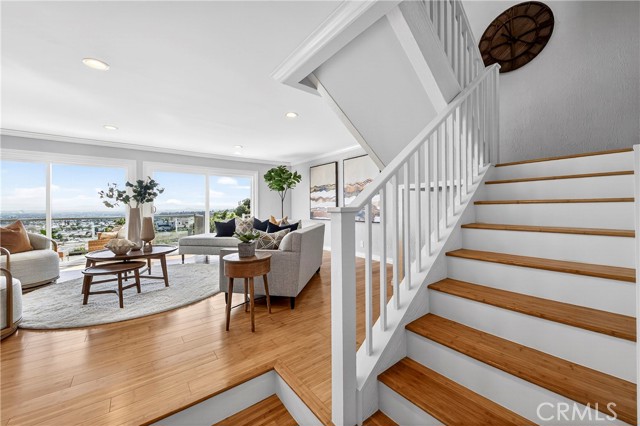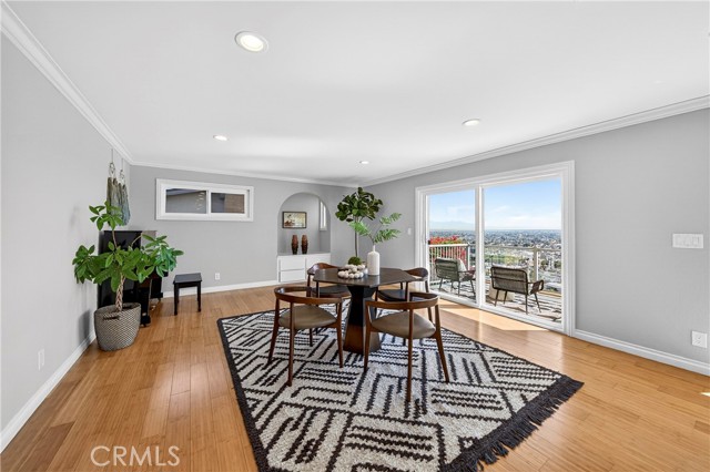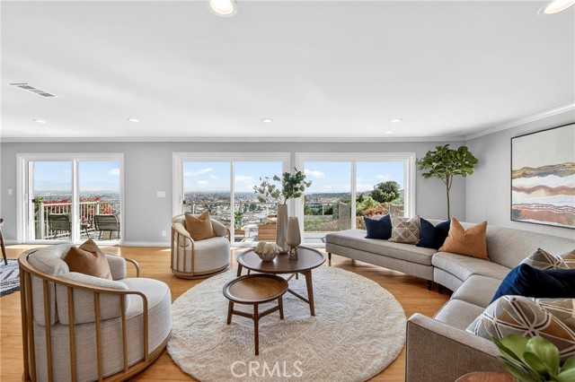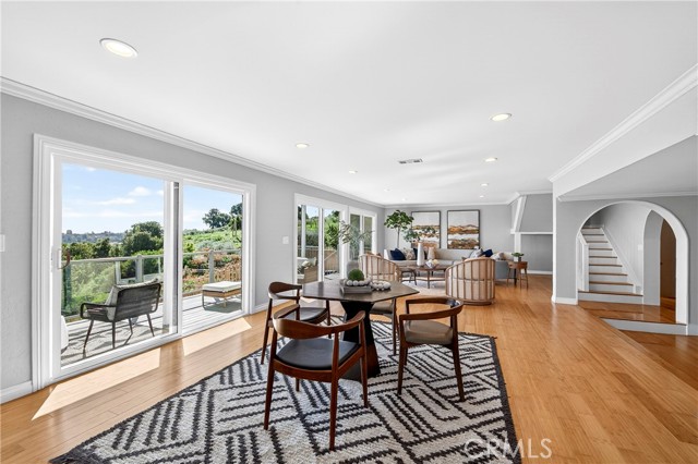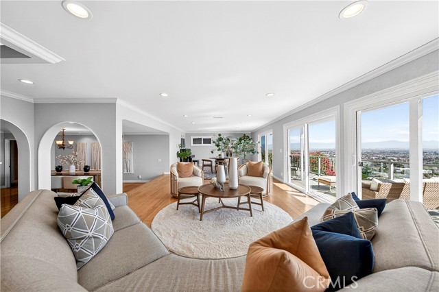 Immaculate home showcasing sweeping views of Victoria Knolls, scenic trails, city lights, and—on clear days—even a glimpse of Redondo Beach. Recently refreshed with a sophisticated, on-trend color palette, the residence welcomes you with a striking visual outlook upon entry. The layout is thoughtfully designed—offering both defined spaces and an open, airy flow—enhanced by subtle architectural arches that add timeless character.