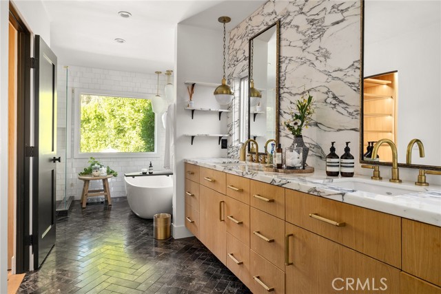 Private, secure, and tastefully designed Spanish residence featured on the cover of Luxe Interiors + Design (Los Angeles Jan/Feb 2024 issue) - available fully furnished! This spacious 4 bedroom, 4.5 bath home features plenty of natural light and contemporary elegance with modern, comfortable upgrades. The 3,900+ square feet of living space was recently refreshed with high-end furniture, art, and other furnishings to complement the home’s free-flowing layout. The main floor features a generous family room, living room, dining room, powder room, and dedicated office. The kitchen is fully equipped with luxury appliances, German hinge cabinetry, and a custom-built breakfast nook. A butler’s pantry with its own separate dishwasher and wine room/display were just installed to accommodate any hosting and entertaining needs as well. Upstairs are four en-suite bedrooms with a spacious primary suite. The outdoor entertaining area offers a pool and spa, brand new outdoor kitchen with built-in bbq, fire pit, and plenty of seating, all enclosed with large privacy hedges. A home gym space in the garage (equipped with free weights, a Peloton bike, a Peloton tread, and Tonal system), Tesla charger, Lutron smart home lights, and upgraded full-security system complete the home to make it a sanctuary in a fantastic Los Feliz location.