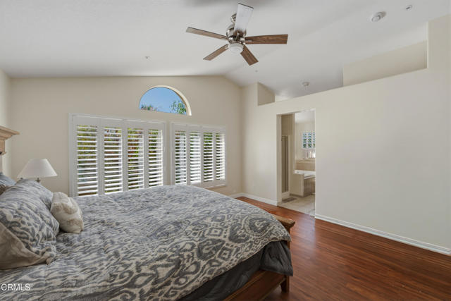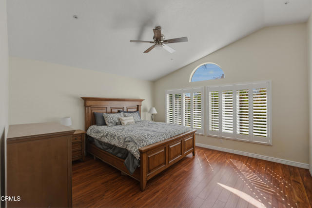Upgraded Mediterranean Classica Residence with private courtyard entry *** ideal location- no neighbors across street and Juanmaria park just on the other side with tennis & pickellball courts **Custom touches throughout with bamboo wood floors ** HIgh volume ceilings - plantation shutters- ** Remodeled kitchen - granite countertops with extended breakfast bar seating and custom painted cabinets- Pendant lighting - Stainless steel appliances ** Inviting formal dining area ** 2 way granite finished fireplace in living and family room areas ** Updated half bath and guest bathroom featuring marble countertops, updated plumbing fixtures and mirror accents ** Spacious master with tumbled stone tile accents - custom ceramic sinks and hardware **French door access from kitchen to Private entertainers backyard with built-in bench seating surrounding the Gas firepit, creating the perfect setting for gatherings or quiet evenings. ** Private Community Pool and Spa ** A Pleasure to show !!