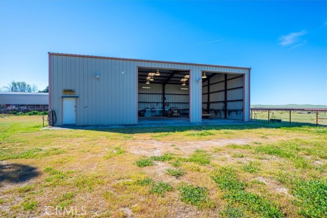 In addition to the two shops, there is covered RV parking and hookups, a clean and functional shipping container for storage, as well as a three-sided metal storage building with a concrete floor—an ideal covered space for vehicles, trailers, ranch equipment, or hay storage. The outbuildings here are exceptional.