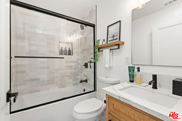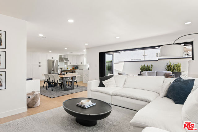 Discover a truly exceptional residence where designer sophistication meets effortless comfort. This completely remodeled 3-bedroom, 3-bath home showcases impeccable craftsmanship and thoughtful detail at every turn, offering a rare opportunity to own a move-in-ready masterpiece. An open floor plan creates a seamless flow, enhanced by abundant natural light and recessed lighting throughout. The living room captivates with a stunning wood accent wall and expansive cantina-style doors that open wide to a private outdoor retreat. Step onto the deck and patio, where a high-end, 4k aluminum pergola with built-in recessed lighting and a louvered roof allows you to tailor the ambiance, from sunlit afternoons to softly illuminated evenings. The chef's kitchen stands as the heart of the home, featuring white shaker-style cabinetry, quartz countertops, a generous island, ample storage, and a built-in wine fridge, perfectly designed for both everyday living and elegant entertaining. The primary suite serves as a serene sanctuary, complete with a gorgeous dual vanity, a beautifully built-out walk-in closet, and sliding glass doors that lead directly to the lushly landscaped backyard. A second bedroom offers its own en-suite bath, while the third bedroom enjoys convenient access to a stylish hallway bath, providing comfort and privacy for family and guests alike. Step outside to an entertainer's dream. The outdoor kitchen boasts a built-in grill and TV, creating the perfect setting for peaceful evenings under the stars or spirited game-day gatherings. Drought-tolerant landscaping, artificial turf, and privacy hedges ensure beauty and ease of maintenance year-round. The attention to detail continues with a beautifully landscaped front yard adorned with lemon and olive trees, illuminated pathway lighting, and an expanded front porch that offers a warm and elegant welcome. A two-car garage with epoxy flooring and a spacious interior laundry room with side-by-side washer and dryer and additional storage complete the home's exceptional offerings. This light-filled, designer-perfect residence blends luxury, comfort, and functionality into one remarkable opportunity. Homes of this caliber rarely become available. This is the one you have been waiting for.