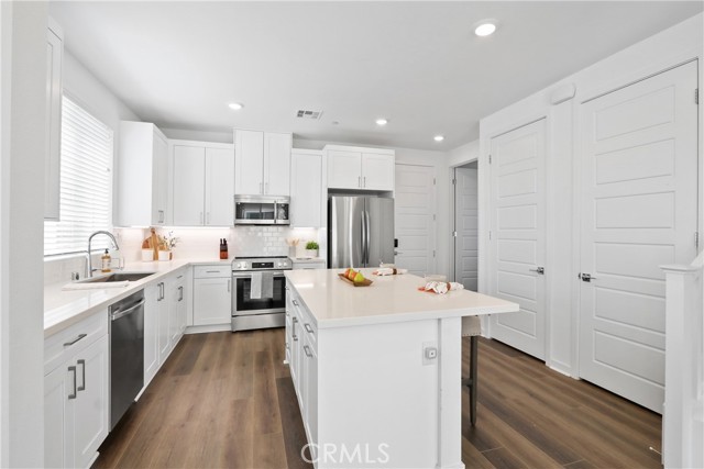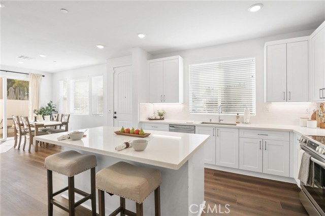 Welcome to this beautifully designed modern home, completed in December 2023. Step inside to soaring ceilings and an abundance of natural light streaming through dual-pane windows. The open-concept layout features 3 bedrooms and 2.5 bathrooms, creating an ideal setting for both everyday living and entertaining. The main level showcases stylish laminate flooring and a spacious flow between the kitchen, dining, and living areas. The chef’s kitchen is thoughtfully appointed with soft-close shaker cabinetry, white quartz countertops, a large center island, subway tile backsplash, and stainless steel appliances including a stove, microwave, and dishwasher. A generous pantry provides ample storage, while the open design keeps everything connected. The dining and living areas open to a private, oversized patio—perfect for relaxing or entertaining outdoors. A convenient powder room, along with direct access to the two-car garage featuring a smart opener and EV charging readiness, completes the lower level. Upstairs, the primary suite serves as a peaceful retreat with high ceilings, abundant light, a spa-like bathroom with dual vanities, an oversized shower, and an expansive walk-in closet. Two additional spacious bedrooms, a full bathroom, and a large laundry room with energy-efficient washer and dryer round out the upper level. Designed with sustainability in mind, this home includes energy-efficient appliances, windows, and water heater, along with a rainwater collection system and automatic sprinklers. The all-electric design is complemented by $30,000 in owned solar panels, helping to keep energy costs low. Ideally located near Old Town Torrance, shopping, dining, and major freeways—with guest parking nearby—this home offers the perfect blend of modern comfort, style, and efficiency. Don’t miss this exceptional opportunity to make it yours!