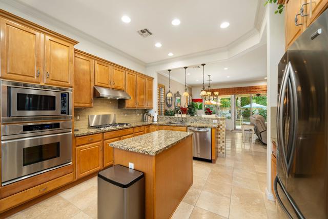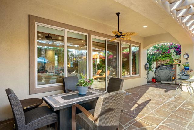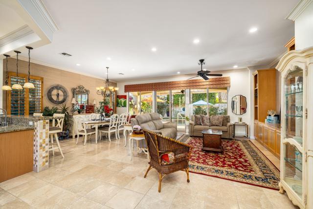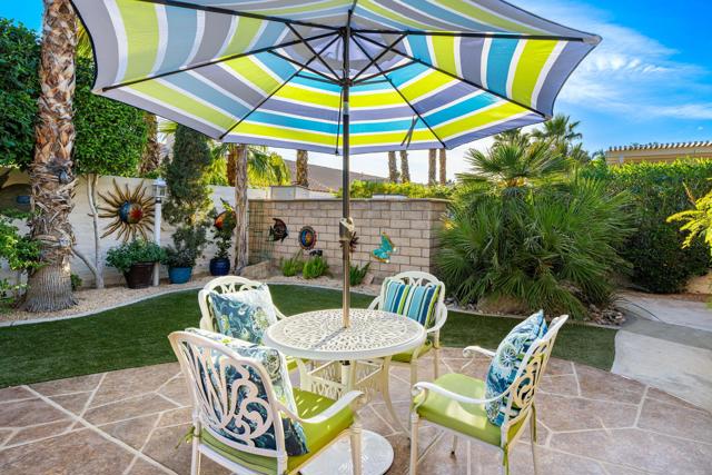 Welcome to resort-style living in Sun City Shadow Hills, one of the desert's premier 55+ active adult communities. This beautifully upgraded San Benito floor plan is being offered TURNKEY FURNISHED, making it truly move-in ready--ideal for full-time residents or seasonal living.Featuring 2 bedrooms, 2 baths, a versatile DEN, and an additional BONUS ROOM, this home provides flexible space for guests, hobbies, or a home office. The open-concept great room is filled with natural light and offers a seamless flow for both everyday living and entertaining, with a dedicated area for formal dining. The granite eat-in kitchen is both stylish and functional, perfect for casual mornings or hosting friends and family.Step outside to your private SOUTH-FACING BACKYARD retreat, where a sparkling SALTWATER POOL AND SPA invite you to relax and enjoy the sunshine year-round. Whether entertaining or unwinding, this outdoor space captures the essence of desert living.Additional highlights include a NEWER TRANE HVAC, a REMODELED PRIMARY BATH, newer STAINLESS STEEL APPLIANCES and a FULLY EQUIPPED & ORGANIZED GARAGE with room for two cars plus a golf cart--perfect for exploring the community and its exceptional amenities. A full list of upgrades is available upon request.Experience the best of active adult living with golf, fitness centers, pools, clubs, and a vibrant social scene--all just moments from your door.