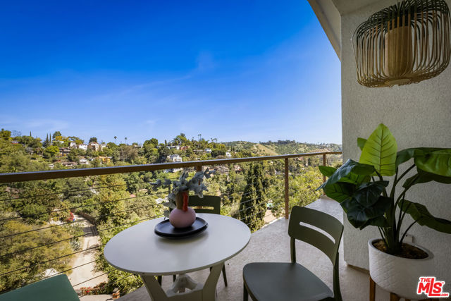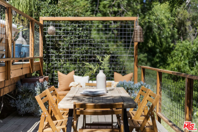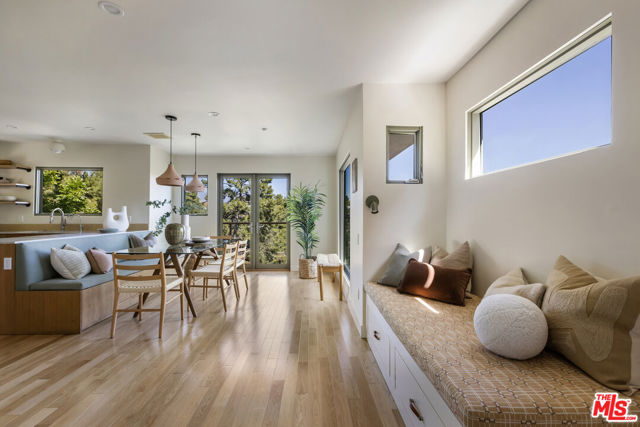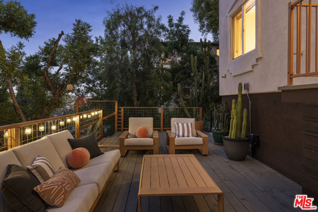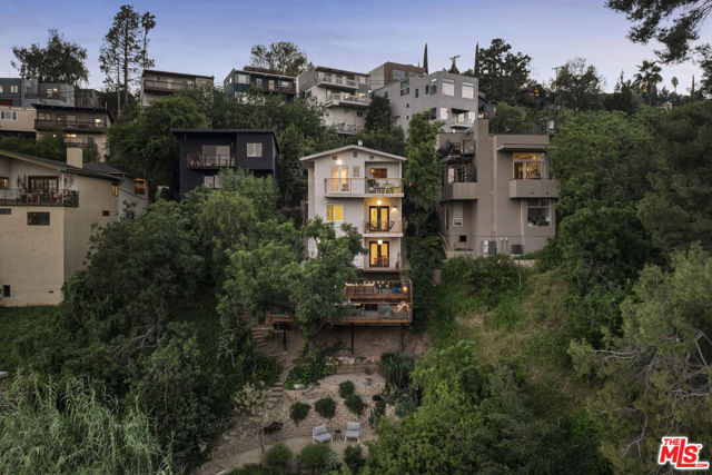 Amongst the verdant tree tops and sweeping views of Mount Washington, sits this modern and thoughtfully designed four-bedroom, three-and-a-half-bath home. Upon entry, you are greeted by glass doors leading to a terrace and a picture window that frames the surrounding hills. The home is oriented away from the street for maximum privacy. The main level offers ample space for entertaining and dining. Thoughtfully designed built-ins provide stylish seating, while the modern and open kitchen showcases elevated countertops, sleek cabinetry, updated appliances, and bespoke fixtures and details. The half bath off the kitchen does not sacrifice aesthetics: its pink custom sink sits above gorgeous clay tile flooring, offering a stylish powder room for guests. On the second floor, there's a living room complete with built in bookshelves and plenty of space to settle in for the evening to watch a movie. The nearby three bedrooms all feature California closet systems, which help keep you organized and make the rooms all feel functional. A laundry room and a bathroom are just off the main hallway, and one bedroom has an en suite full bath and a private balcony. The home's third level is entirely dedicated to the expansive primary bedroom and bathroom, creating a sanctuary with plenty of space to customize, making it your ultimate place of respite after a long day. Complimented by a walk in closet and a recently remodeled bathroom with oceanic blue tile. The balcony off the primary bedroom provides direct access to the two lower wooden decks (rebuilt in 2024). Designed for al fresco dining, lounging, and taking in the views among the mature landscaping, these decks maximize the outdoor and yard space this hillside home affords you. A two-car garage with direct main-level access completes the space. Located within the coveted Mount Washington school district, this home is desirable for its serene landscape and proximity to the vibrant neighborhoods of Highland Park and Eagle Rock.