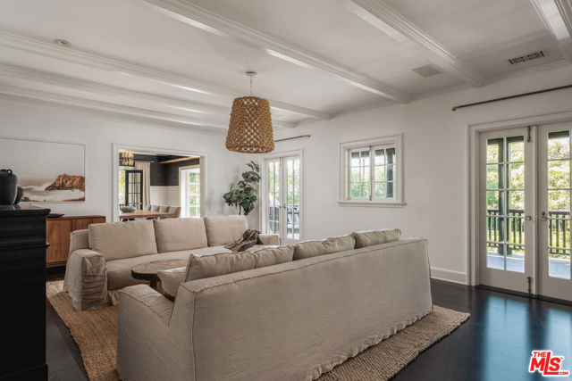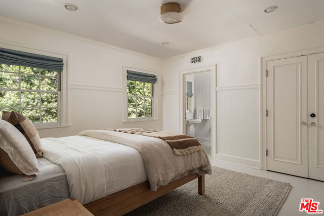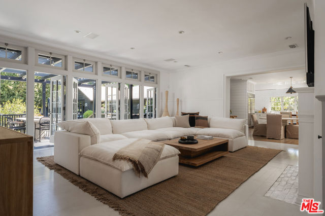 Nestled behind towering hedges and mature trees, this exquisite one-story traditional estate in Brentwood Park offers an unparalleled sense of privacy and serenity. Masterfully reimagined by renowned designer Windsor Smith, the residence is situated on a coveted corner lot, surrounded by sweeping, meticulously manicured lawns that evoke a sense of timeless grandeur. Inside, four generously appointed en-suite bedrooms are bathed in natural light, each a private retreat of comfort and elegance. The formal living room, centered around a stately wood-burning fireplace, sets the stage for refined gatherings, while the chef's kitchen equipped with top-tier appliances and a walk-in pantry seamlessly blends function with sophistication. The inviting family room opens through elegant French doors to one of several covered patios, creating a seamless indoor-outdoor flow that is perfect for entertaining. Beyond, the estate's lush grounds reveal a private oasis complete with a swimming pool, spa, and a sports court, offering endless opportunities for leisure and recreation. A rare offering of distinction and prestige, this remarkable residence embodies the very essence of Brentwood Park living.