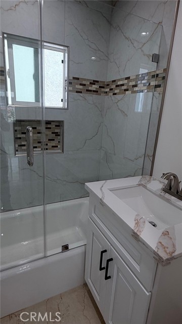 abundant natural light. Elegant tile flooring runs throughout the home, adding both style and durability. The bathroom has been completely remodeled with a glass
