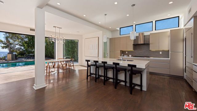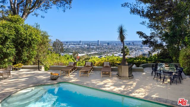 Designed by acclaimed architect Marmol Radziner, this striking modern residence captures breathtaking panoramic views stretching from downtown Los Angeles to the Pacific Ocean. Located just moments from the Sunset Strip's premier dining, nightlife, and shopping, it offers the perfect balance of luxury, privacy, and convenience.Expansive glass walls frame open living spaces that transition seamlessly between the chef's kitchen, dining area, and a flexible lounge that can serve as a private screening room. The outdoor spaces are ideal for entertaining, featuring a sparkling pool, outdoor shower, built-in BBQ, and multiple terraces positioned to take in the glittering city lights.Thoughtfully updated throughout, the home includes modern bathrooms, contemporary flooring, premium appliances, and new climate systems. Upstairs, two spacious primary suites feature fireplaces, walk-in closets, office areas, and retractable glass doors that open to a terrace with its own fireplace and mesmerizing skyline views.This turnkey contemporary residence exemplifies exceptional craftsmanship, timeless design, and an unmatched location in one of Los Angeles' most sought-after neighborhoods.