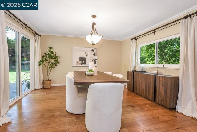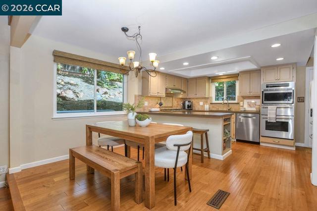Welcome to this beautifully maintained home with exceptional curb appeal and a private, serene setting. Offering 5 bedrooms and 2.5 bathrooms, this residence blends comfort, functionality, and thoughtful updates throughout. The versatile fifth bedroom on the main level is used as a home office, ideal for today’s lifestyle. Engineered hardwood flooring flows seamlessly through the main living areas, creating a warm and inviting ambiance. The updated kitchen boasts stainless steel appliances, breakfast bar and stone counters, designed for both everyday living and entertaining adjoining the dining and family room. The spacious primary suite offers a relaxing retreat, complete with dual closets and a private balcony. Enjoy year-round comfort with a dual-zone climate control system. Outside, a newly installed stamped concrete driveway and walkways. The expansive, lush backyard provides endless possibilities—perfect for entertaining, relaxing, or creating your dream outdoor oasis. Additional storage shed. Don’t miss out on this one of a kind! Open Tuesday, April 14th 10:00-1:00 & Sunday, April 19th 1:30-4:00