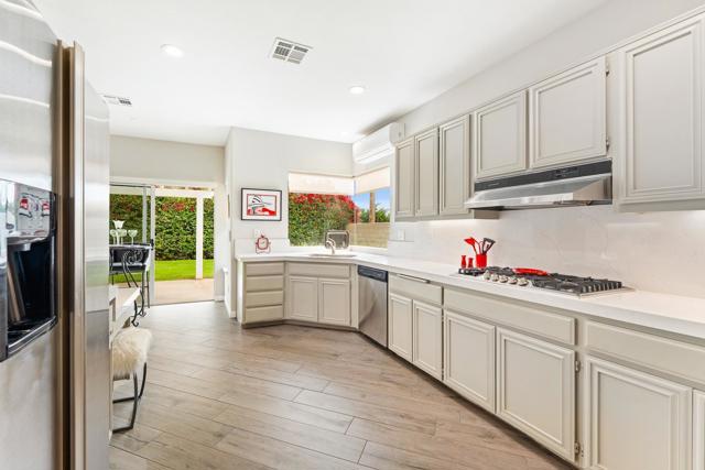 Best Priced Upgraded Home in Whitehawk! Fully renovated and move-in ready, this stunning 3-bedroom, 2.5-bath residence offers the perfect blend of modern design, comfort, and value within a quiet, gated enclave in the heart of Palm Desert.Step inside to find a beautifully upgraded interior featuring quartz countertops, sleek porcelain flooring, stainless steel appliances, recessed lighting, and freshly painted walls throughout. Designed for both relaxation and entertaining, the home also includes a private, covered patio--ideal for enjoying the desert lifestyle.The garage is a standout feature for car enthusiasts, complete with epoxy flooring and its own mini-split A/C system. Additional highlights include golf cart access to a nearby course, with optional membership opportunities at Woodhaven.The HOA offers exceptional value, covering a premium Spectrum package, trash service, and maintenance of the common grounds and gated entry.Fully upgraded and competitively priced, this is the best value opportunity in Whitehawk for buyers seeking modern finishes without the added maintenance and cost of larger homes.