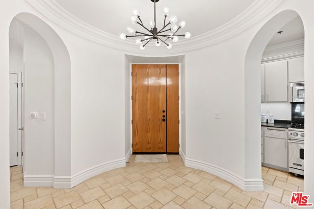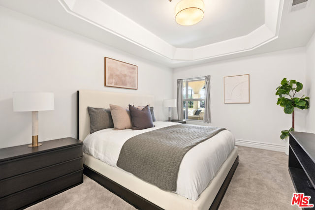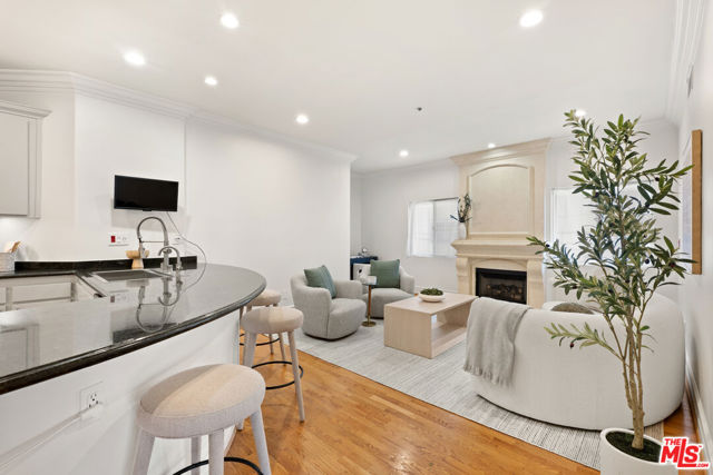 A rare corner residence in a beautifully maintained Mediterranean courtyard building, this fully renovated 2-bedroom, 2-bath + den condo blends timeless architecture with modern, move-in-ready living in a prime Century City adjacent location. Step through an elegant curved entry into a light-filled, open layout where expansive wood-framed windows and French doors create a seamless connection to the outdoors. The oversized covered balcony framed by classic arches and overlooking the city feels like a true extension of the home, ideal for morning coffee, relaxed evenings, or effortless entertaining. The interiors have been thoughtfully updated throughout, offering a clean, elevated aesthetic while maintaining warmth and character. The kitchen is designed for both everyday living and hosting, featuring stone countertops, stainless steel appliances, generous storage, and a large breakfast bar that opens naturally into the main living spaces. The primary suite is a private retreat with direct access to the terrace, a custom walk-in closet, and a spa-inspired bath complete with a soaking tub, separate shower, and beautiful natural light. The second bedroom is well-positioned for guests, a home office, or flex space, complemented by a stylishly updated bath.Additional features include in-unit laundry, recessed lighting, central comfort, and two side-by-side parking spaces. The building offers a tranquil courtyard with fountain, 2 underground tandem parking spots and guest parking. Ideally located just moments from Century City, Beverly Hills, Westwood, Rancho Park Golf Course, and Westfield Century City.