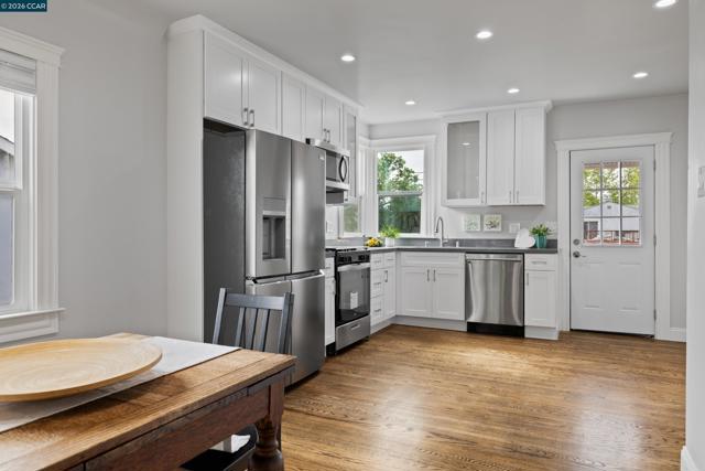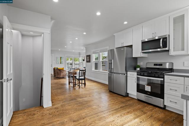 This beautifully remodeled 1,312-sq ft, two-story home truly checks all the boxes, showcasing thoughtful upgrades & timeless finishes throughout, this home offers both comfort & style. Discover refinished hardwood floors, abundant natural light & freshly painted interior enhanced by recessed lighting, custom textured ceilings & new dual-pane windows. Open-concept main level seamlessly connects the living, dining & kitchen spaces, perfect for both everyday living & entertaining. Living room features hardwood flooring, recessed lighting, wood-burning fireplace w/ tiled trim & wall of windows filling the space w/ light, creating an open & airy ambiance ideal for gathering w/ family & friends. Spacious dining area flows effortlessly into the fully remodeled kitchen w/ stunning quartz countertops, custom cabinetry & brand-new stainless-steel appliances. The kitchen overlooks the expansive backyard & offers direct access to the patio, making indoor-outdoor living a breeze. Primary bedroom features walls of windows, recessed lighting & generous closet. Updated full bathroom w/ quartz countertops, modern vanity & custom-tiled shower over tub. 2nd bedroom offers comfort & versatility w/ hardwood flooring & ample closet space. 3rd bedroom features private entrance & remodeled ensuite.