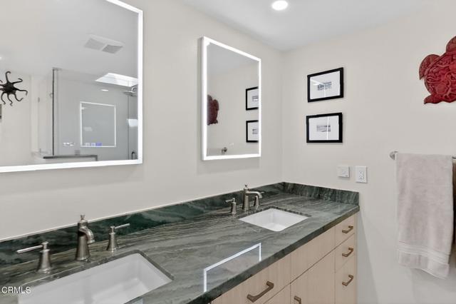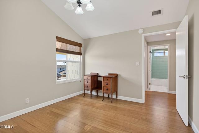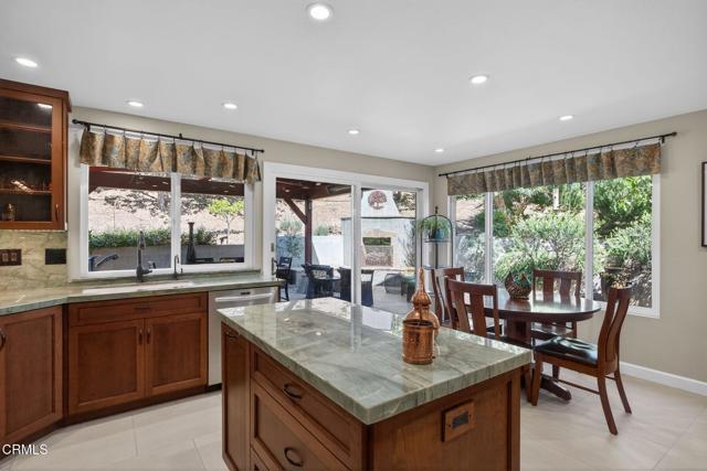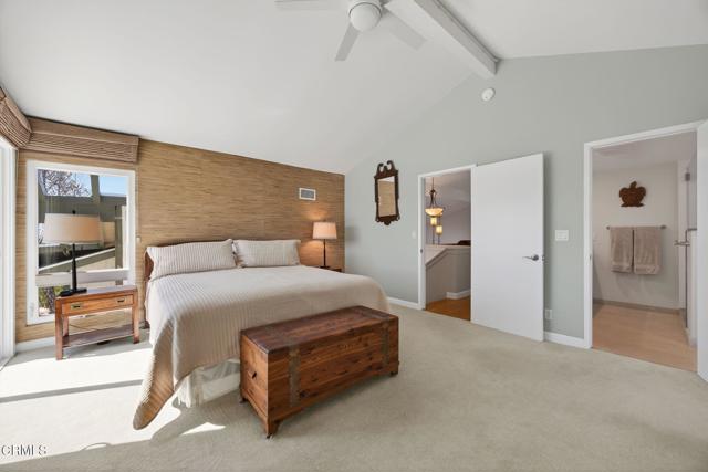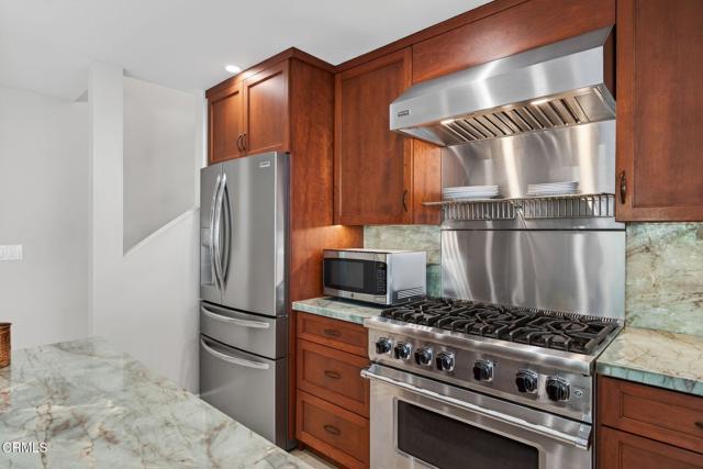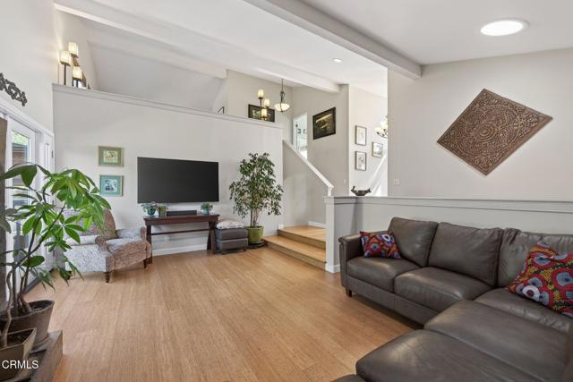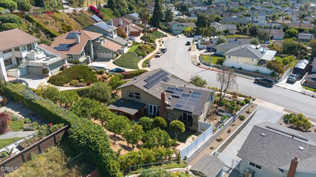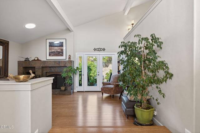 Once every few years an Ashwood Estate home, located in the desirable above-the-Ventura College area, becomes available; today is the day. Nestled below the foothills of Ventura, this home is like no other. The mid-level entryway greets you with gorgeous bamboo flooring. Solar tubes create a bright and cheerful living room and the slate rock fireplace invites all to sit and enjoy.The lower-level boasts a gourmet kitchen with solid maple custom cabinets and natural stone countertops. The Viking six-burner stove and oven make gourmet cooking a breeze. There is plenty of storage for kitchen appliances with a walk-in pantry as well as a separate walk-in food pantry.The upper-level master suite offers a library featuring lighted solid maple bookcases. The sliding glass doors off the master suite open to a private veranda that offers beautiful views of the Ventura foothills. The custom master closet is spectacular.The fully custom master bathroom with newer bamboo cabinets, stone flooring, recessed illuminated medicine cabinets, walk-in shower with rain-head and built-in seat, frameless glass door and enclosure, and stone pebble floor. One more master suite plus is the split-air heating and air conditioning, which is whisper quiet.The front and backyards are fully landscaped with the sustainable gardening touches that only a master gardener can provide. Entertain family and friends on the newer concrete patio. Sit under the vaulted wood-beam custom cover with lighting, or warm yourself in front of the wood burning custom fireplace that includes flagstone bench seating on both sides. Never buy citrus fruit again because the backyard has 15 citrus trees (orange, lemon, lime, grapefruit as well as avocado to name a few).There is also a 24-panel electric system with Tesla storage battery (100% owned). There is so much more to this move-in ready home...all this and parks and hiking trails just minutes away.