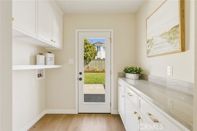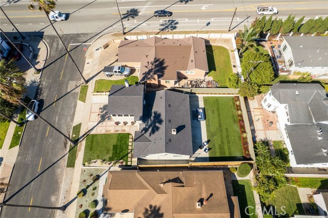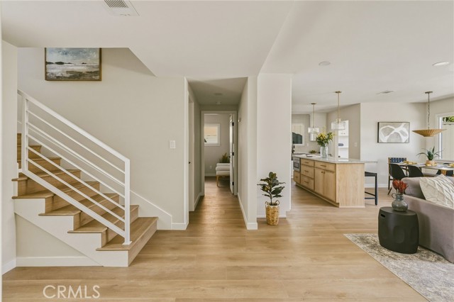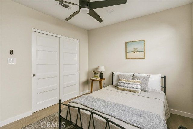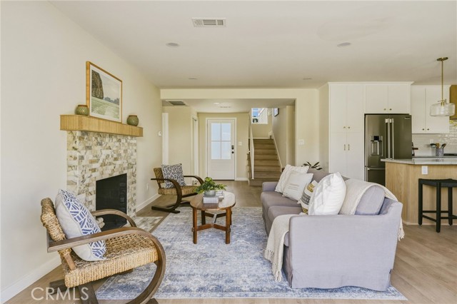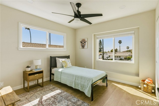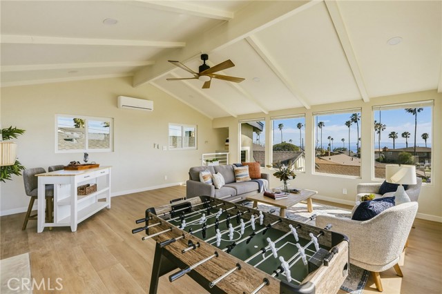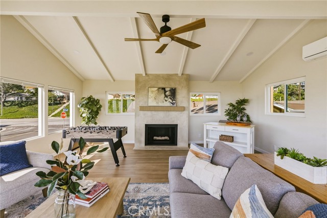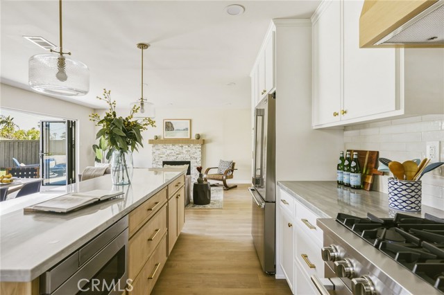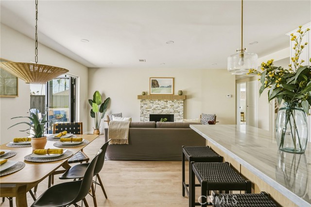 VIEWS, VIEWS, VIEWS! Welcome to this beautifully RENOVATED 3 bedroom, 2-bathroom home located in prime South Shores neighborhood. This home has an inviting curb appeal featuring gorgeous new landscaping, a 2-car garage with epoxy floors and large driveway offering off street parking for multiple cars. This home has a bright open floor plan with the downstairs living area opening to the kitchen and dining area. The kitchen has been updated with new cabinets, sleek Maldivi Quartzite counter tops, tile backsplash, stylish fixtures, stainless-steel appliances, and large center island with additional countertop seating. The spacious primary bedroom has 2 closets with custom built-ins, an ensuite bathroom and access to the back yard patio. Both the primary and hall bathroom feature new vanities, stylish new fixtures, and custom tile work. Other features include freshly painted interior and exterior, new luxury flooring throughout the living area, bedrooms and family room, tile flooring in the bathrooms, new energy efficient vinyl windows, new roof, plumbing and light fixtures, upgraded 200 AMP electrical panel, HVAC, new exterior fencing, new ceiling fans and spacious indoor laundry room with built in cabinets for additional storage. The upstairs flex room features and abundance of windows with PANORAMIC OCEAN AND CATALINA VIEWS, vaulted ceilings, decorative fireplace and AC split system. The accordion glass door in the living room offers the perfect blend of indoor outdoor living and leads to the private enclosed backyard with a large patio and manicured yard perfect for outdoor fun and entertainment.