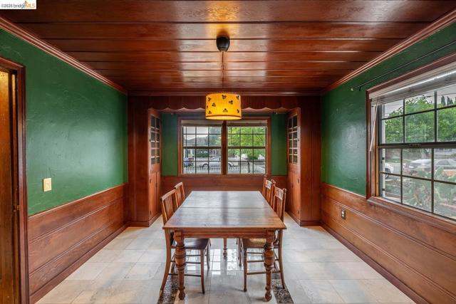 Open House Saturday 4/4 11am-1pm. Step back in time to this rare, character-rich 1941 gem in the heart of Antioch. From the moment you walk in, you're greeted by original knotty pine wood cabinetry and wall paneling in the kitchen, original wood-paneled ceilings, built-in bookshelves, and a charming bay window seat in the living room — all lovingly preserved from 1941. The dining room stuns with original wood paneling, wood ceiling, and built-in cabinetry, now complemented by updated marble tile floors. The kitchen shines with updated granite countertops and a beautiful stone backsplash. Cozy up by the living room fireplace, elegantly updated with a marble tile surround. The original 1941 wood staircase leads you upstairs to built-in cabinetry, two bedrooms with a connecting crawl space, attic storage, and a full bath. A convenient half bath is located downstairs. The laundry room off the kitchen features a private side entrance. The detached garage adds storage and flexibility. Outside, enjoy a generous 5,314 sq ft lot. This home is a rare opportunity to own a piece of history with timeless craftsmanship and thoughtful updates throughout. Truly one of a kind — schedule your showing today.