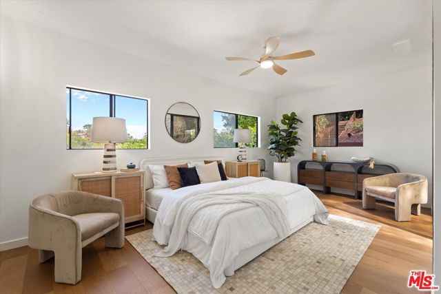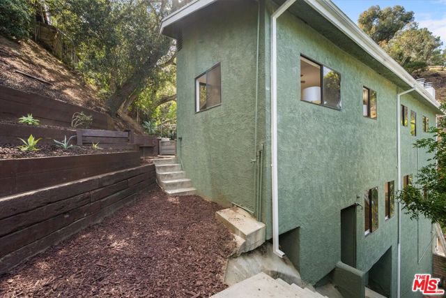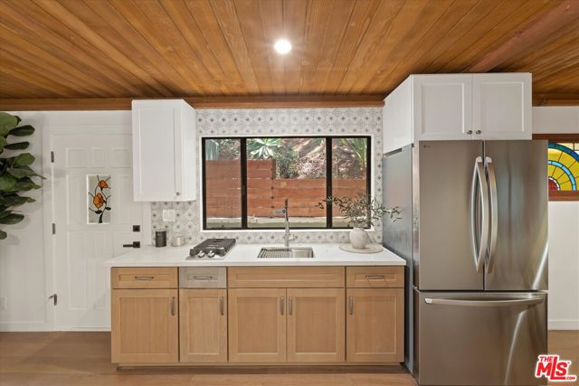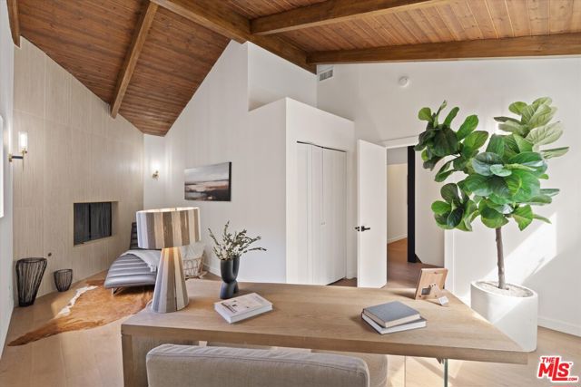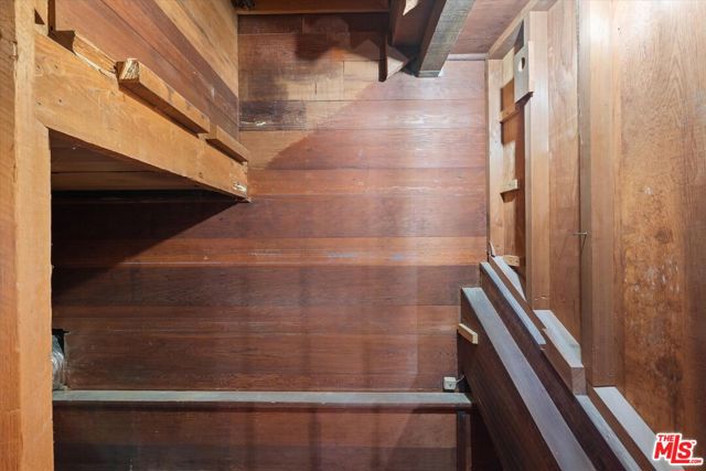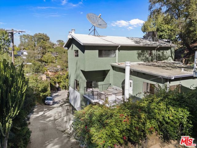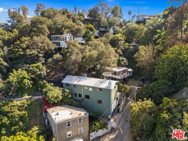 Nestled on a quiet cul-de-sac in the heart of iconic Laurel Canyon, 8506 Oak Court is a truly special and character-rich retreat surrounded by canyon views, mature trees, and legendary history. Originally built in the 1950s, this unique home blends timeless charm with thoughtful updates, showcasing original wood siding, stained glass details, and an inviting lower-level den in the original portion of the residence. As you move through the home, a separate upper level offers incredible creative flexibility with a desk area ideal for a studio or workspace, plus a closet potential for use as a vocal booth. At the top of this wing, you'll find a living room, dining area, kitchenette, bedroom, bathroom, and a beautiful patio overlooking the canyon.An expansive addition completed in 1970 introduces a spacious second wing with 3 bedrooms and 2.5 baths, highlighted by dramatic two-story ceilings in the living room, a beautiful fireplace, engineered hardwood floors, updated lighting, and a well-appointed kitchen featuring a wine rack, beverage fridge, pantry, and adjacent laundry room. A powder room and formal dining area add convenience, while the oversized two-story, two-car garage includes a dumbwaiter that brings bags and groceries directly up to the dining level. Upstairs, soaring arched wood ceilings create a striking architectural statement. This level includes an office or bedroom with fireplace and canyon views, an additional bedroom, a full hallway bath, sauna, second laundry area, and an extraordinary primary suite with sweeping views, a walk-in closet, freestanding tub, large shower, double vanity, private water closet, and direct access to a private deck.Outside, the terraced hillside is lined with lush plantings and a built-in walkway leading upward for even more immersive views of Laurel Canyon. Just moments from Hollywood, Laurel Canyon Market, beloved hiking trails, and the rich music history of the neighborhood, this one-of-a-kind property offers an inspiring lifestyle in one of Los Angeles' most storied enclaves. Come experience it in person.