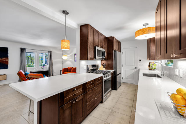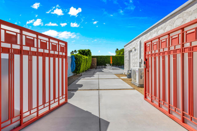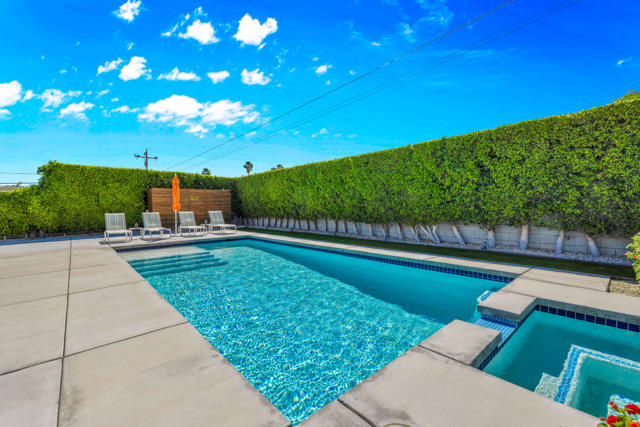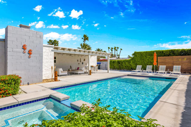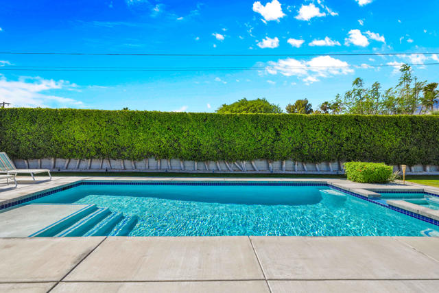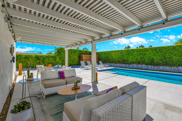Beautifully upgraded 3-bedroom, 2-bath home featuring a private, resort-style backyard with pool and spa, mountain views, fruit trees, and multiple outdoor living spaces designed for relaxation and entertaining. Enjoy automated landscape lighting, Alumawood(r) patio covers, and immersive Sonos(r) audio that make outdoor living effortless.Inside, the home showcases extensive improvements including whole-house insulation, solid-core interior doors, updated electrical outlets, switches, and air ducts throughout, plus a fully renovated hall bathroom, and custom, birch utility and linen closet doors. The updated kitchen offers quality Samsung appliances including a dual-fuel convection range, microwave/vent, Bespoke counter-depth refrigerator (2025), as well as a brand-new Miele dishwasher (2026).Technology-forward features include a Crestron Home(r), whole-house automation system controlling lighting, patio shades, front door lock, and outdoor audio, along with a professional-grade WiFi and LAN network with CAT6 wiring in every room and connectivity for both Frontier fiber and Spectrum.Major system upgrades provide comfort and efficiency, including a Lennox Signature Series HVAC system, newer roof (2015) with elastomer recoating completed in 2024, REEM 50-gallon water heater, water softener connection, and Google/Nest smoke and carbon monoxide detection.Additional highlights include a fully insulated garage with its own heating and cooling system, LG washer and dryer, and epoxy floor. A concrete driveway and gated area for an RV offer many parking options. The neighborhood is currently capped for short term rental permits, but a Jr. Vacation Rental Certificate could be available. Check with the City of Palm Springs for details.