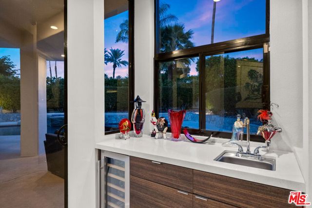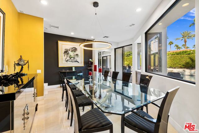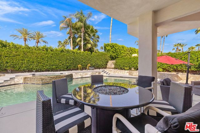 Adjacent to Tamarisk County club , this beautifully reimagined Desert Contemporary retreat offers seamless indoor-outdoor living in a private, resort-style setting. Thoughtfully updated with clean modern lines and warm, organic finishes, this home delivers a refined yet approachable take on modern desert living.Upon entry, soaring ceilings and high-set windows flood the space with natural light, creating an open, airy environment that feels both expansive and inviting. The main living areas flow effortlessly into the dining space and updated kitchen, where sleek cabinetry, quartz countertops, stainless steel appliances, and a generous island create a natural gathering place for everyday living and entertaining alike.Expansive walls of glass frame the backyard and open to a true outdoor sanctuaryfeaturing a sparkling pool and spa, multiple lounge areas, and mature landscaping that offers both privacy and a lush desert backdrop. Designed for connection and relaxation, this space embodies the essence of indoor-outdoor desert living.The oversized primary suite serves as a serene sanctuary, with direct access to the backyard and a spa-inspired bath complete with dual vanities, a freestanding soaking tub, and a spacious walk-in shower. A large, well-appointed walk-in closet adds both function and a sense of everyday luxury.Additional highlights include updated bathrooms, contemporary flooring throughout, and a thoughtful layout that balances clean design with livable comfort. Every space has been curated to feel intentional, cohesive, and move-in ready.Ideally located near dining, shopping, golf, and outdoor recreation, this home presents an exceptional opportunity to experience elevated California living in a setting designed for both relaxation and entertaining.