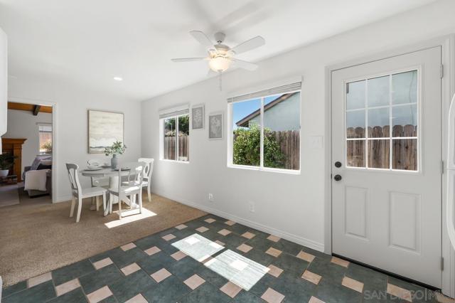 Don’t miss this opportunity to own a 3BR/2BA home tucked away in a quiet pocket of North Clairemont. This property offers great potential and is ready for your personal touch. Enjoy beautiful curb appeal with a refreshed exterior, including a newly painted garage, updated stucco, and enhanced landscaping. The open, spacious floor plan is light and bright, featuring a large living area accented with wood-beamed ceilings and a warm brick fireplace. Additional features include neutral carpeting and ceiling fans throughout. The galley kitchen offers abundant storage and includes a cozy nook area. The private backyard boasts two concrete patio spaces—perfect for outdoor living and entertaining. Centrally located with easy access to the beach, downtown, UTC/UCSD, and major freeways. Situated on a flat, expansive 5,900 sq ft lot, this home is an ideal canvas to create your dream space!