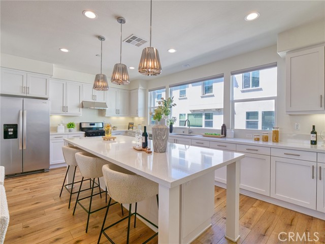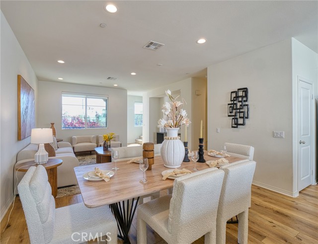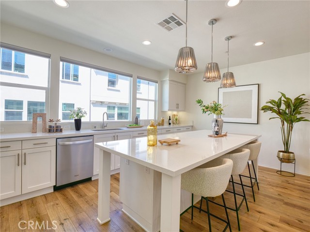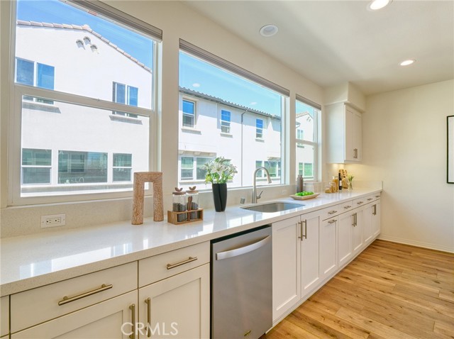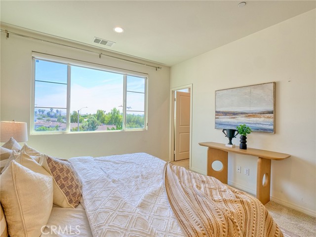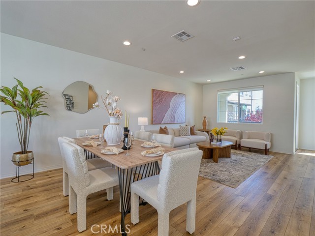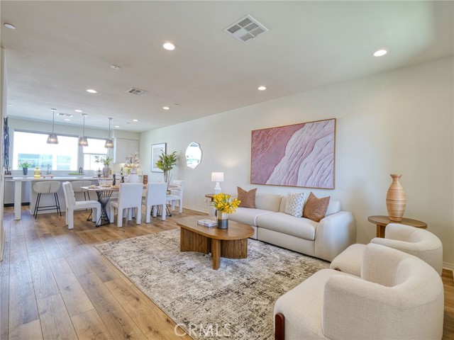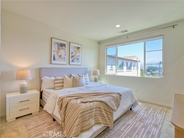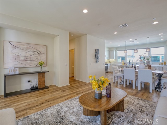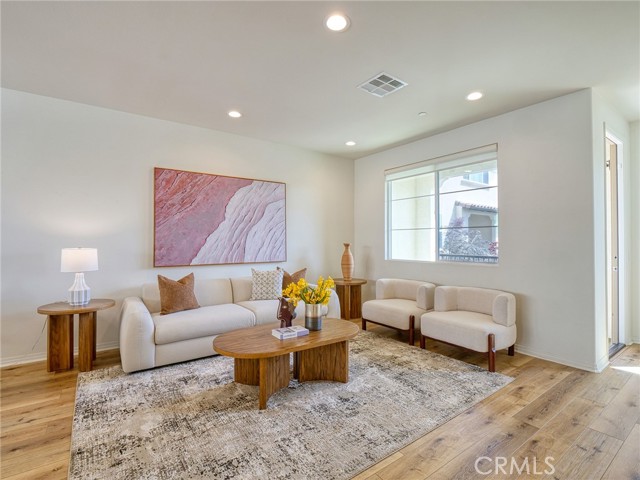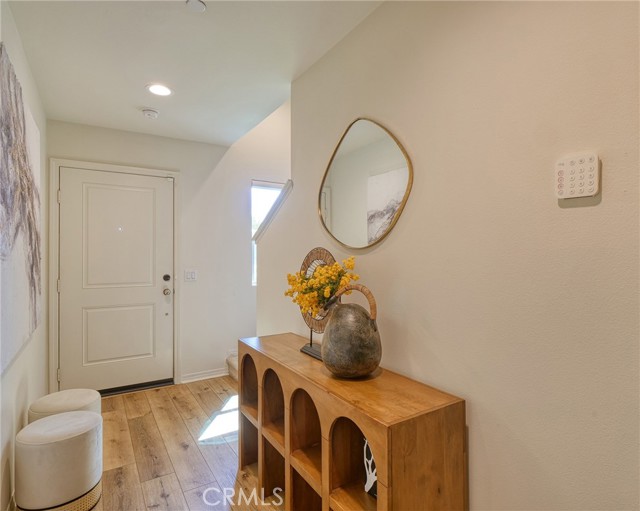 This home includes numerous builder upgrades, including luxury vinyl plank flooring on the first two levels, LED lighting, Hunter Douglas and manual window shades, extra cabinetry, and a tankless water heater. A private balcony off the second floor adds a nice outdoor touch. Two car garage with direct access to the house and Tesla charger installed. Conveniently located near supermarkets, dining, schools, hospitals, and the 605, 210, and 10.