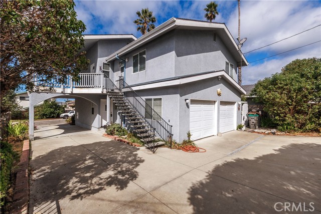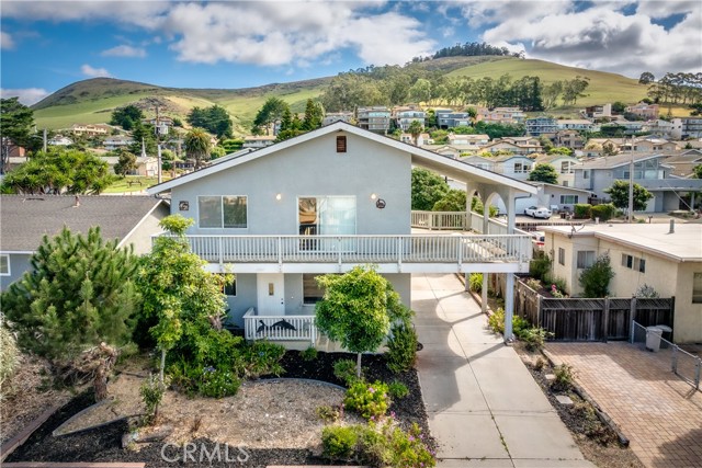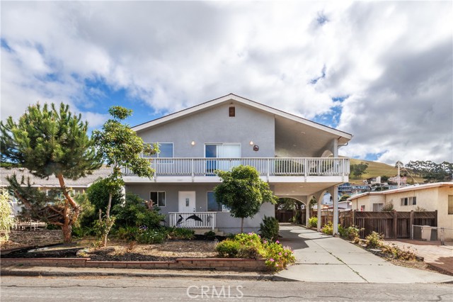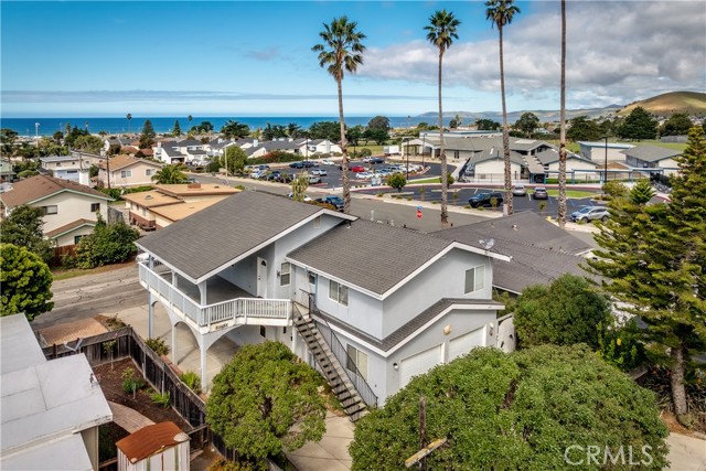 Is it finally time to make that beach home dream a reality? Unique opportunity in North Morro Bay - this versatile 1,666 sq ft property is ideal as a beach retreat, income-producing investment, or BOTH. The upstairs unit offers 2 bedrooms and 2 baths, vaulted ceilings, an open living/dining/kitchen flow including a sweeping wraparound side/front balcony, perfect for outdoor living with peek-a-boo white cap ocean waves and sunset views; the primary suite includes mirrored closets and a private bath with dual sinks and a walk-in shower. The additional upstairs bedroom is spacious and shares the guest bath which offers dual sinks and shower / tub combo. Downstairs features a separate 1-bedroom, 1-bath apartment with kitchenette and private entrance—perfect for rental income, guests, or multi-gen living—while interior stairs connect both levels to a 2-car garage, laundry and extra storage or living space that could serve as a fourth bedroom. Practical highlights include dual access from Fir St. and Greenwood, ample covered parking, yard area, and plenty of street parking. With its flexible floorplan and proximity to the sand, this North Morro Bay home is a rare find—schedule a showing to see its potential now.