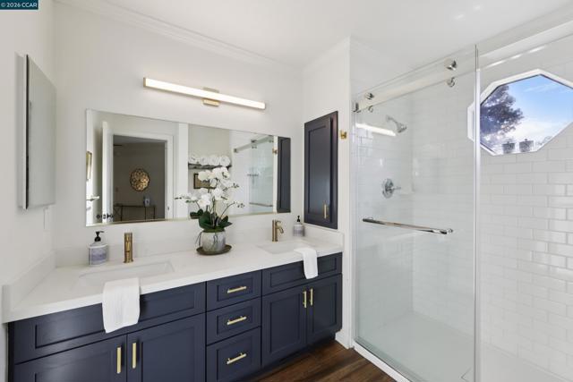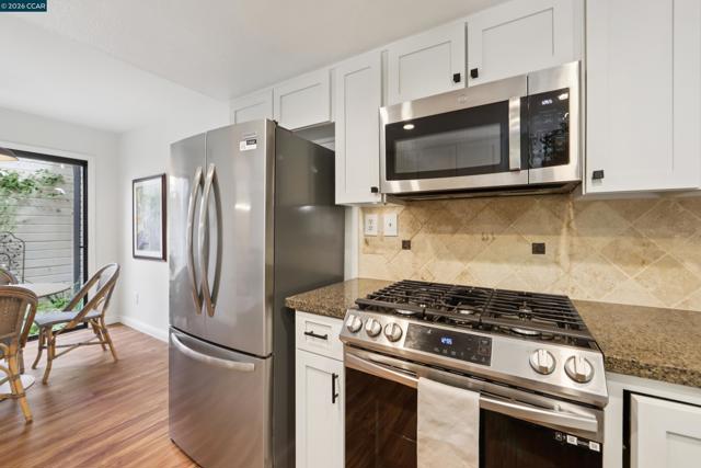 Absolutely adorable duet-style townhome located in the heart of Pleasanton, just a short walk to vibrant downtown Main Street with its shops, dining, and entertainment. This light-filled home features vaulted ceilings and an abundance of natural light throughout. Offering 3 bedrooms, 2 full bathrooms, and a convenient half bath, the layout is both functional and inviting. The gourmet kitchen has been thoughtfully upgraded with quality appliances and fixtures, making it perfect for both everyday living and entertaining. Enjoy a spacious 2-car garage with ample storage and room for a home gym or workout area. Step outside to a charming, semi-private outdoor space surrounded by lush trees—ideal for relaxing and enjoying a sense of peace and tranquility. This home combines comfort, style, and an unbeatable location.