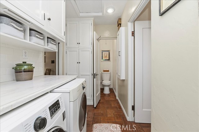 A spacious indoor laundry room adds versatility, complete with an additional toilet and sink, along with potential to add a shower.