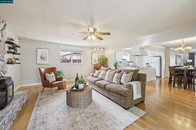 Welcome to this beautifully maintained home offering just under 1,600 sq ft of comfortable living space. Featuring 3 spacious bedrooms and 1.5 baths, this home blends charm, functionality, and an excellent commute location. Inside, enjoy a bright open-concept layout with elegant hardwood floors throughout the main living areas. The expansive kitchen features a large center island, gas stove, and is perfect for everyday living and entertaining. The oversized living and family rooms provide plenty of space to relax or host guests, while the updated main bathroom adds a modern touch. Outside, the beautifully manicured lawns and backyard are perfect for entertaining, complete with a covered patio for year-round enjoyment. Don’t miss this inviting, move-in-ready home!