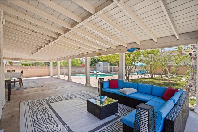 Welcome to this immaculate two-story home, nestled in one of Sun Valley's most sought-after neighborhoods. The property boasts impressive curb appeal with wrought iron and block pillar fencing, lush landscaping, tall palm trees, and a charming paver courtyard. Inside to discover a spacious and flowing 1,961 square foot floor plan, designed for both comfort and style. The home is in "Move-In Condition" with elegant crown molding, a newer paint scheme, and a tasteful combination of laminate and tile flooring throughout. The bright and airy living room features recessed lighting, a custom-tiled fireplace with a raised hearth, and natural light streaming through the sliding glass patio doors. The gourmet kitchen is a chef’s dream, offering ample cabinet space, granite countertops with a beautiful backsplash, a dual-basin stainless steel sink, and built-in stainless-steel appliances. The adjacent dining area, with direct access to the patio, is perfect for family meals or entertaining guests. This home features 4 spacious bedrooms, including two grand suites. The large downstairs suite includes a lighted ceiling fan, two mirrored closets, a cozy sitting area, and direct access to the backyard patio. The second-floor suite is equally inviting, with a lighted ceiling fan and a private, well-appointed bathroom. The home also offers one secondary bedroom with its own bathroom, making a total of 3 bathrooms in the home. Energy-efficient dual-pane windows help maintain a quiet, peaceful atmosphere while keeping utility costs low. Central air and heat ensure year-round comfort. Step outside to the expansive backyard, perfect for entertaining with a gigantic, covered patio and a sparkling, fenced pool. A large storage shed is available for all your supplies, making it a functional space as well as a beautiful one. Parking is a breeze with an oversized concrete driveway and a 2-car direct-access garage, all secured behind a rolling security gate. This gorgeous home sits on an 8,552 square foot lot and is conveniently located near top-rated schools and the 5 Freeway, offering the perfect blend of comfort, style, and convenience. Don’t miss the opportunity to make this stunning home yours!
