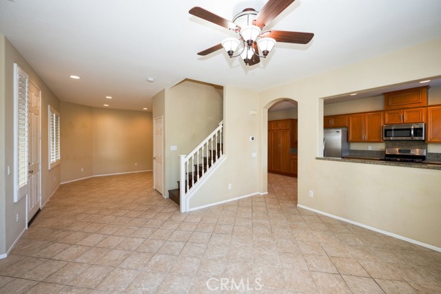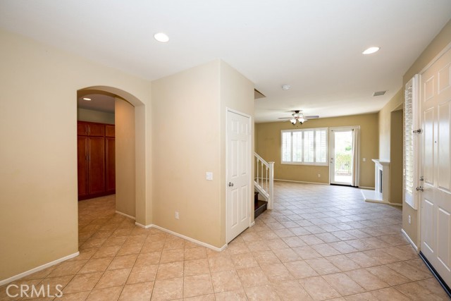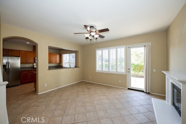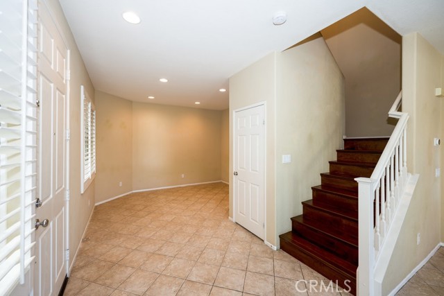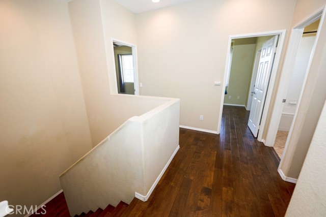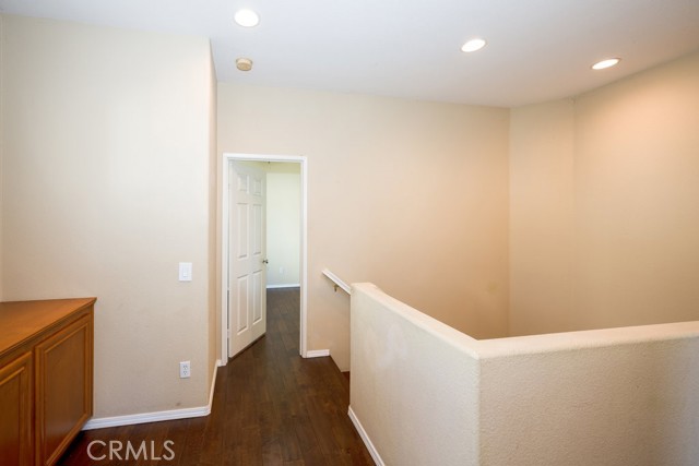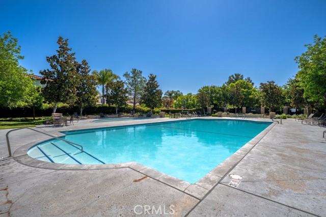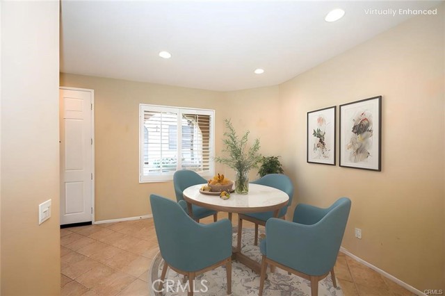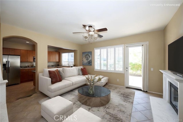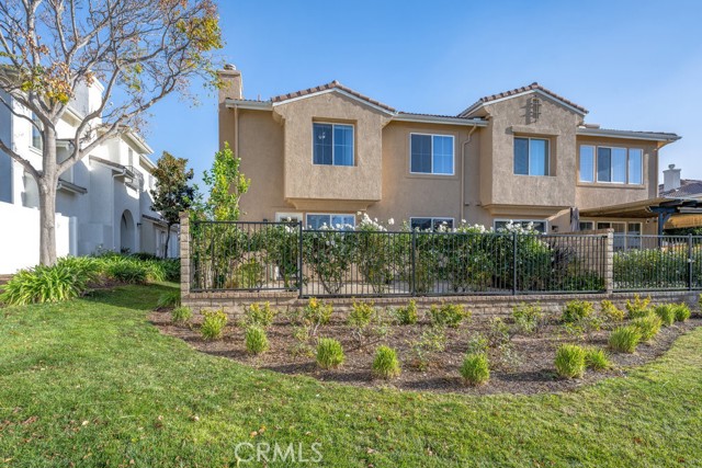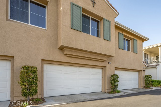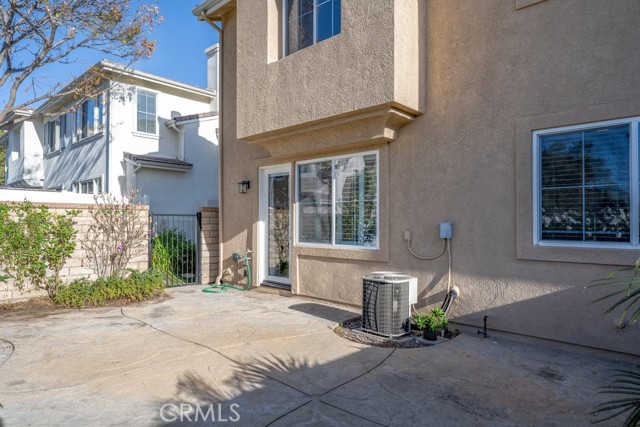 Location, Location, Location! The Galleria at Alta Vista subdivision is in close proximity to the 5 freeway and many shopping and dining venues in the area. Walking distance to Valencia High School. This beautiful end unit features a stamped-concrete patio that is fenced and gated, with views of the adjacent greenbelt, providing added privacy. The spacious kitchen has extensive custom upgraded Maple cabinets with extra storage, granite countertops, a built-in dishwasher, and recessed lighting. The Living room has a cozy fireplace and plantation shutters. The formal dining room has plantation shutters and recessed lighting. As you enter the property through the attached two-car garage, you will notice the overhead storage. A separate laundry room with washer and dryer hookups is adjacent to the garage area. All bedrooms are upstairs. The master bedroom has a walk-in closet off the master bath, there are two vanities, and lots of linen storage.
