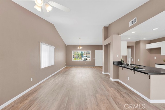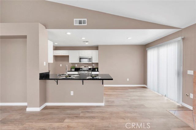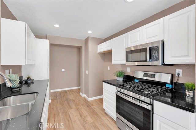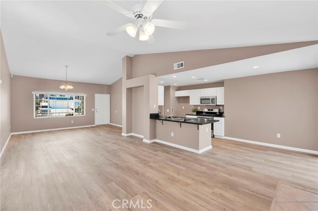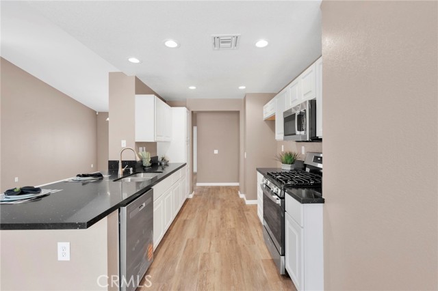 The modern kitchen is a showpiece, boasting brand-new stainless steel appliances and striking black quartz countertops that extend into both the kitchen and baths. Perfect for entertaining or everyday living, the open layout connects the living, dining, and kitchen areas seamlessly.