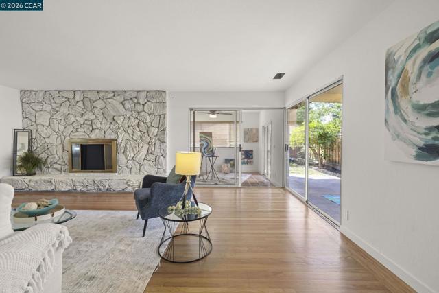 Wow! Sunny, light /bright ,Gleaming hardwood refinished flooring, freshly painted interior, Ready for you !3 bdrm 2 full baths PLUS sunroom off living room w/ saltillo tile& slider to exterior. Large formal livingrm with slider to exterior too. Large cozy fireplace w/raised hearth. Large light n bright primary w/ bath, (new surround&flooring) Low maintenance yard, private backyard w/ shed& fully fenced yard, and well on site.Extra wide aggregate driveway. Heart of Vibrant Pleasant HIll, Walk to shopping, Restaurants,Melos Pizza,Movie theater, Park&Farmers market! AND $9800. credit to buyer, from seller at COE exterior painting?buydown?closing costs? or? Brokers open 4/14 11-1pm AND open house this 18th SAT 2-4 pm and 19th Sunday 1-4 pm