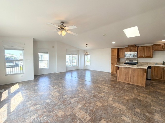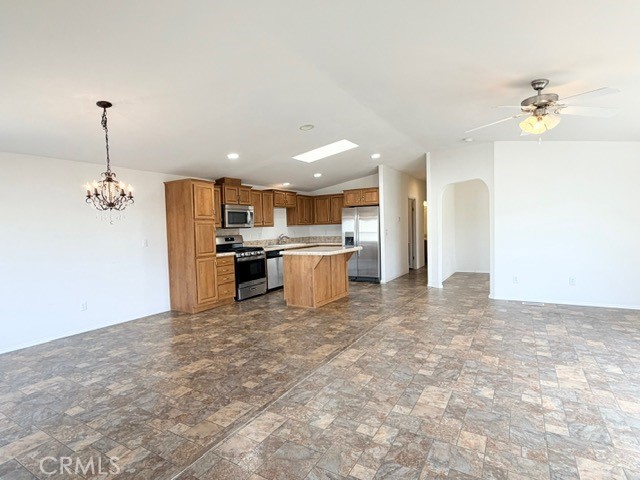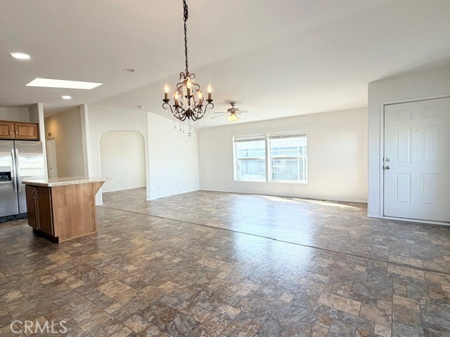 Open Floorplan!!! Welcome to Valencia Lea, Highland's premier 55+ senior community. 2014 Fleetwood Crown Pointe Extreme home, with approx. 1428 SF, 2 bedrooms, 2 bath, plus bonus room and attached 2 car garage. Talk about curb appeal, with low maintenance landscaping and brick steps up to the front porch on a large corner lot. This well-maintained home features vaulted ceilings, low-maintenance solid-surface floors, dual pane windows with blinds and ceiling fans. Enter the HUGE great room, perfect for modern living and comfortable enough to entertain. The open concept kitchen has ample storage, skylight, a pull up island with bar and includes the stainless-steel fridge, microwave and stove. Through an archway you’ll find a large office/bonus room. The spacious primary bedroom has a oversized walk-in closet and a generously sized ensuite bath with glass enclosed walk-in shower and linen closet. The guest room, bath and dedicated laundry room with included washer and dryer, round out this lovely home. Call or come in to schedule a showing, this house ready for you to call it home!