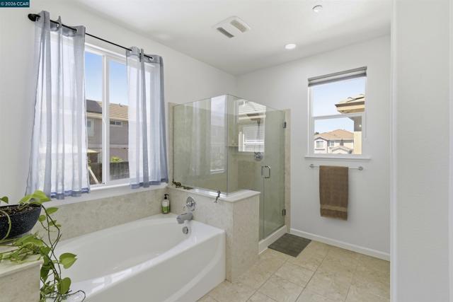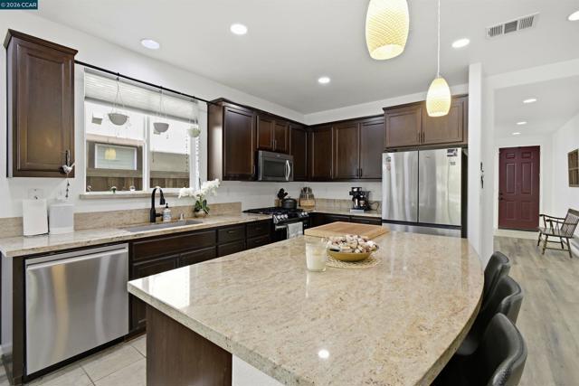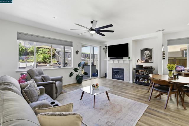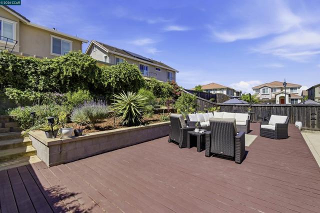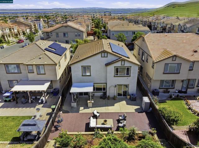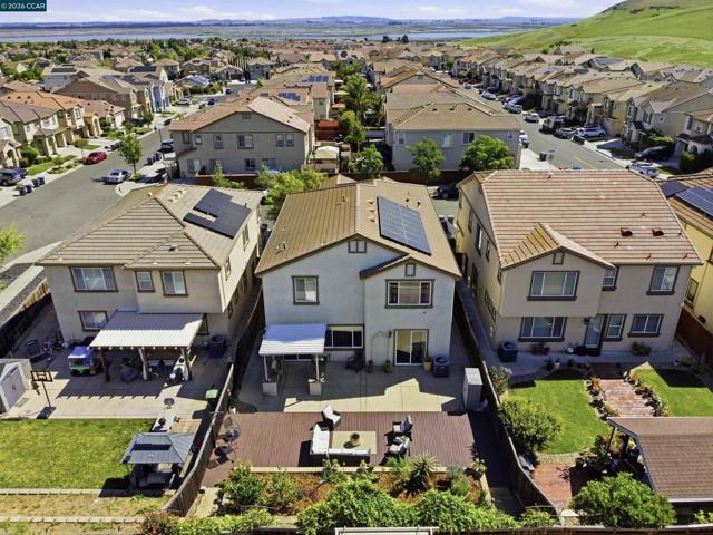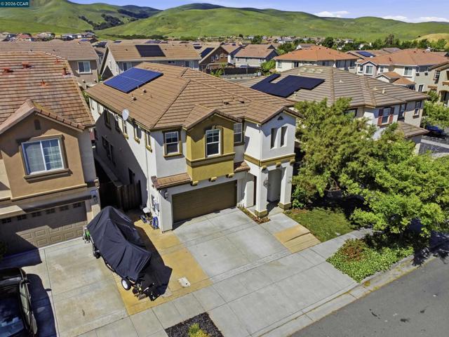 Beautiful 5-bed, 3.5-bath home offers 3,257 sqft of bright, open living space with stylish, contemporary finishes throughout. Features include double primary suites, one on each floor, an elegant spiral staircase & distinct 9ft ceilings. Open gourmet kitchen with granite counters, spacious pantry, breakfast nook & newer SS appliances. Upstairs, primary suite features walk-in closet, shower & separate soaking tub. Plus 3 spacious bedroms, loft, laundry & large hall bath. Downstairs, the Jr suite includes full bath, walk-in closet & private patio slider to backyard. Thoughtfully designed with abundant storage, luxury vinyl floors thru-out & new custom blinds. Entertainer’s dream backyard, with stamped concrete patio & fully equipped outdoor kitchen with plumbed gas BBQ, mini fridge. Large freshly painted deck with drainage system adds additional functional space, the upper-tier garden includes raised beds with an integrated drip irrigation system & several fruit trees (Avocado, Apple, Lime, & Kumquat). Auto sprinklers in front & backyards. Owned solar panels add both efficiency & value to this exceptional home. Nearby trails, great schools & Cordelia park, a commuter's paradise with close proximity to I-680, I-80, & mins to Benicia bridge. Don’t miss this one! Views: Ridge