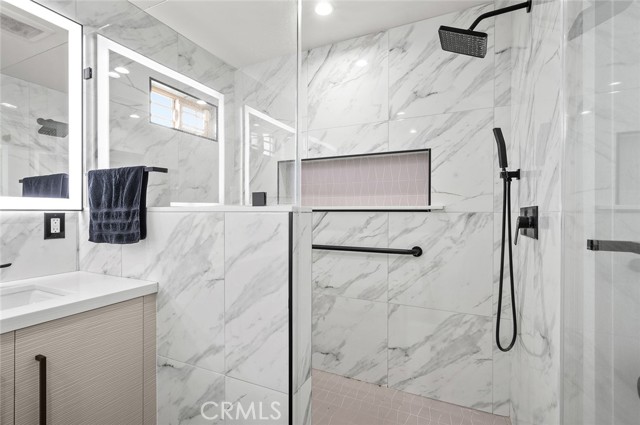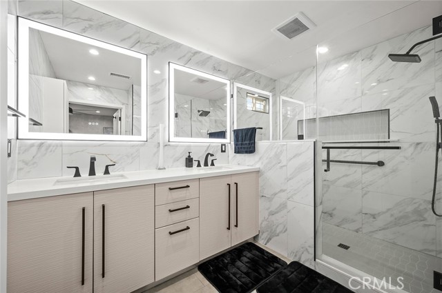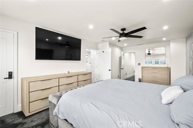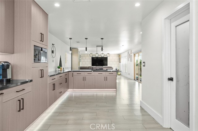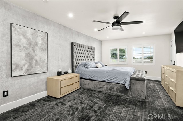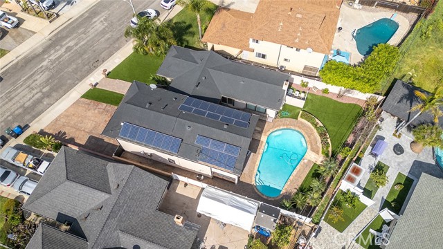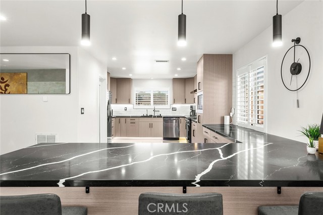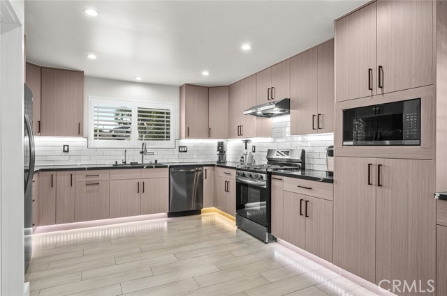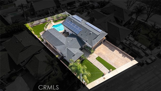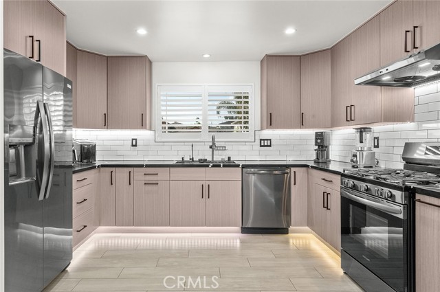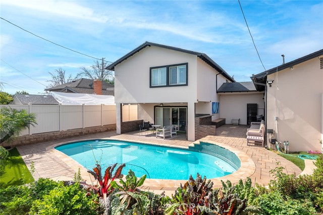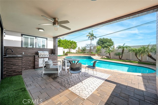 Beautifully upgraded 4-bedroom, 3-bath home offering 2,637 sq ft of modern luxury and thoughtful design. This turnkey property is loaded with high-end features and smart upgrades throughout. Enjoy peace of mind with a full camera system surrounding the home, complete with DVR and remote viewing. A whole-house filtration system (valued at $7,500) adds comfort and quality to everyday living. The interior boasts brand-new kitchen cabinets, striking accent walls with custom finishes, sleek black chrome appliances, and a spacious pantry ideal for storage and organization. Additional highlights include a large coat closet, wet bar, and ultra-soft carpeting. The home features beautifully upgraded bathrooms with digital showers, modern finishes, and updated flooring, along with a stylish new staircase and railing. Fresh interior and exterior paint, LED lighting throughout, and a brand-new tankless water heater enhance both style and efficiency. Step outside to your private backyard retreat featuring a pool with a new pump and finish, built-in BBQ with island, built-in fire wall, and elegant landscape lighting—perfect for entertaining. The custom marble-look garage flooring adds a polished touch. With walk-in closets, smart home features, and premium upgrades at every turn, this home offers the perfect blend of comfort, technology, and style in a highly desirable location.