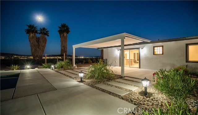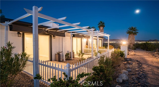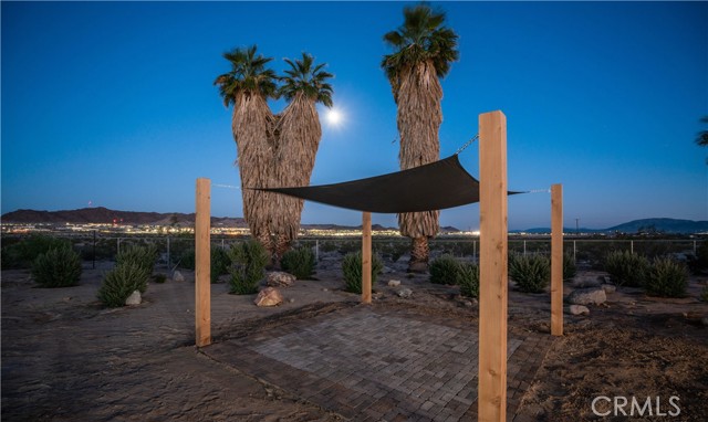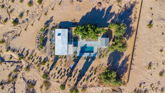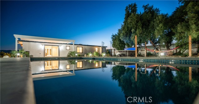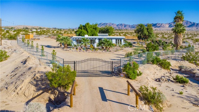 Welcome to An Oasis in the Desert. On this expansive 26.6-acre lot you will find privacy, peace and perfection. The main structure is a Mid-Century brick home with 3 Bedrooms and 2 Baths, all beautifully renovated by a local General Contractor. This Complete Renovation took the original structure down to the bare bricks. From this basis, a brand new home was constructed keeping the original, solid brick frame. A new interior was constructed adding all new electrical, plumbing, fixtures, and appliances. This double-walled and insulated structure provides the type of quiet we all desire as well as protection from the outside elements. When being outdoors is craved, this property boasts a brand-new inground pool, complete with a floating pathway around the pool, the spa, and between the house and guest house. This outdoor area is surrounded by a wide variety of original and new indigenous plants and rocks to create a stunning tropical environment. All plants are on a sprinkler system to make their enjoyment stress-free. The guest quarters is found at the far end of the pool area and has an outdoor shower and both an exterior access bathroom and an interior bath. The above-ground spa is also brand new and has the perfect adjustments for the jets and temperatures to help you unwind. The attached 20-acre parcel is perfect for exploring, hiking or developing into anything a new owner may desire. The water supply is a well that was recently upgraded. Enjoy bird watching or enjoying the night sky beyond what you have ever experienced. This property has a gorgeous Mountain Views to both the North and South, where the world-famous Joshua Tree National Park is located. The drive to the East Entrance of the park takes only 19 minutes.
