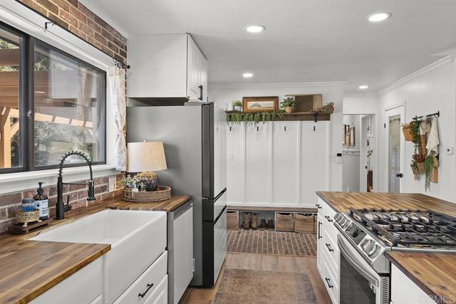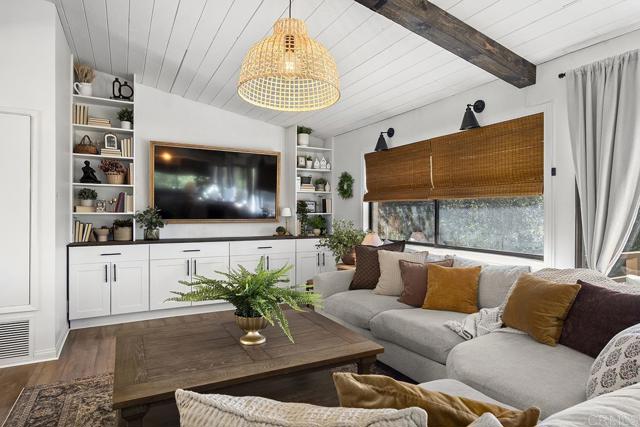 Views Galore!!! This charming home is Perched to capture sweeping, unobstructed views across all of Pine Valley, this exceptional property offers a rare blend of refined modern farmhouse design, resort-style living, and multi-unit versatility. The main residence has been thoughtfully reimagined with elevated finishes throughout—featuring wide-plank flooring, fresh interior and exterior paint, upgraded electrical, new roof and designer lighting that creates a warm yet sophisticated ambiance. At the heart of the home, the chef’s kitchen is both functional and striking, showcasing custom cabinetry, a farmhouse sink, brick backsplash, modern appliances, and an inviting breakfast nook that flows seamlessly into the living space. A built-in entertainment feature and faux beam accents add character while maintaining a clean, upscale aesthetic. Step outside to a true lifestyle setting—an expansive view deck and pool area designed to take full advantage of the breathtaking panoramic surroundings, offering the perfect backdrop for entertaining, relaxing, or enjoying serene sunset evenings over the valley. The property also features a fully detached one-bedroom, one-bath guest residence complete with its own kitchenette and laundry—ideal for multigenerational living, private guest accommodations, or income-producing potential. Additional highlights include owned solar for energy efficiency, a mini-split system, upgraded wood stove, garage workshop, outdoor shed, pantry, and even a custom treehouse—blending luxury with functionality and charm. A truly rare offering combining elevated design, expansive views, and flexible living in one of Pine Valley’s most scenic settings.