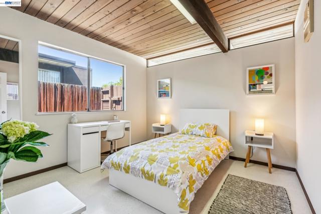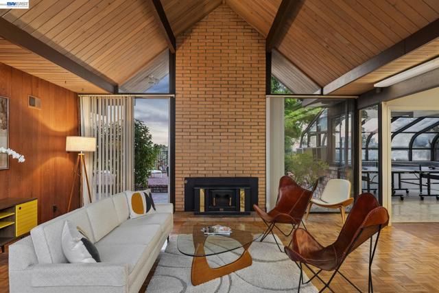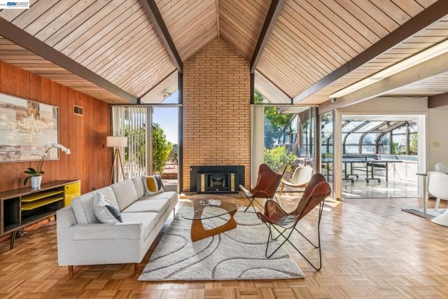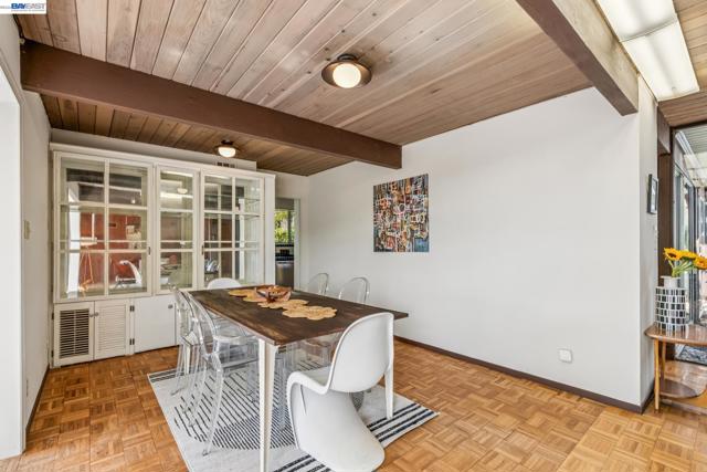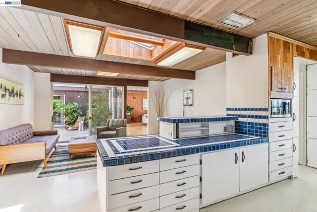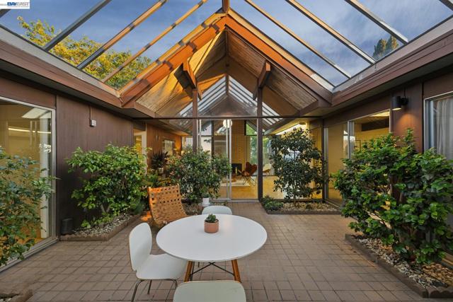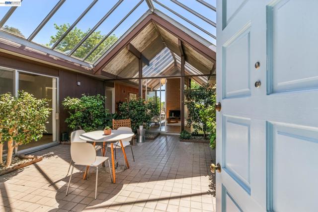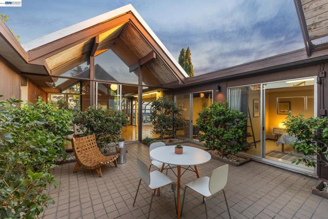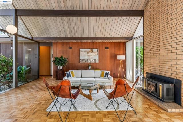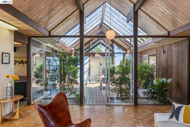 First time on the market in over 48 years for this highly desirable, and rarely available A. Quincy Jones "Double-A" model Eichler home in the Sequoyah Hills development of Oakland; one of the smallest Eichler communities in all the East Bay, and one of the only neighborhoods with underground utilities. Situated high atop the East Bay Hills on a private and pastoral lot of over 8,000 square feet with peek a boo views of the Bay, this expansive single level mid-century modern gem features 5 bedrooms, 2 full bathrooms, and a stunning open air atrium entrance with retractable cover enabling you year round enjoyment of the additional space. Other details include an expanded kitchen with gas stove, which is atypical to an Eichler home. There's been a sunroom added for relaxing and entertaining. Many of the original features that define the era remain intact including unpainted ceilings, an unpainted brick fireplace that's a main feature of the great room with soaring cathedral ceilings, covered carport, and many of the original closet doors. Plenty of preparation as well before listing including new "period" VCT flooring, fresh paint throughout, and more to get you started making this amazing opportunity yours!