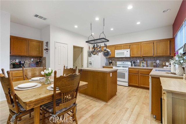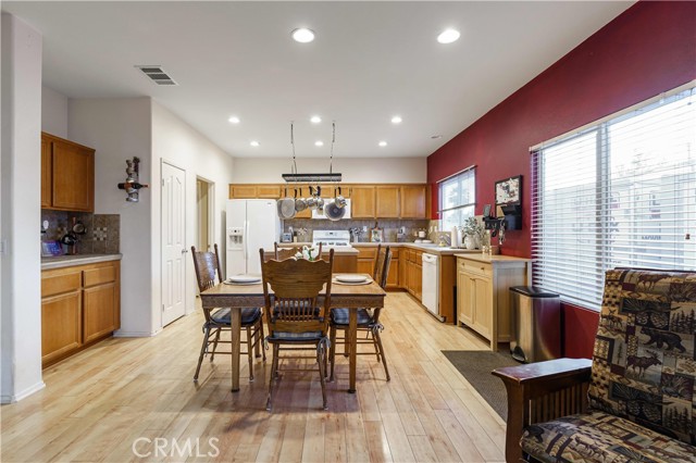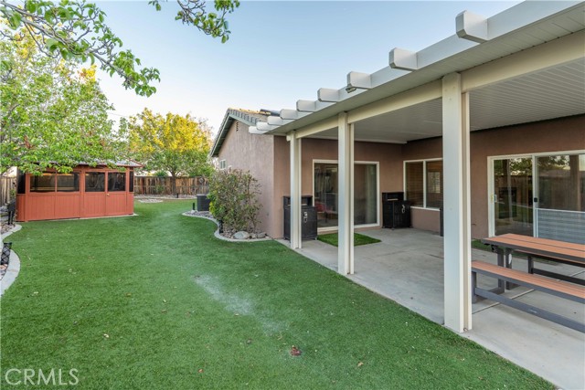 Welcome to 13466 Viejo Circle, a spacious single-story home offering 4 bedrooms, 3 bathrooms, and a layout designed for both everyday comfort and easy entertaining. From the moment you arrive, the curb appeal stands out with beautiful fencing, river rock accents, turf, and landscape lighting that create a warm and inviting first impression. The large driveway and 2-car garage with electrical for a car charger add convenience, while the expansive yard offers room to enjoy the outdoors in multiple ways. Inside, the home features an open kitchen with a large island, abundant storage, and a fantastic pantry, all flowing naturally into the dining area and family room. A double-sided fireplace connects the living and family rooms, adding character and a cozy focal point to both spaces. There is also a separate formal dining room, giving you added flexibility for gatherings, holidays, or daily use. The primary suite includes a walk-in closet and dual sinks. The indoor laundry room adds practical convenience and storage as well. Step outside to a backyard built for enjoyment, with turf, river rock, RV access, black water disposal, 2 built-in sheds, a large covered patio, and a spa tucked inside an enclosed gazebo. With its spacious lot and thoughtful exterior features, this property offers a unique combination of function, comfort, and outdoor appeal.