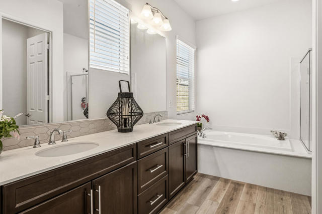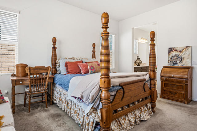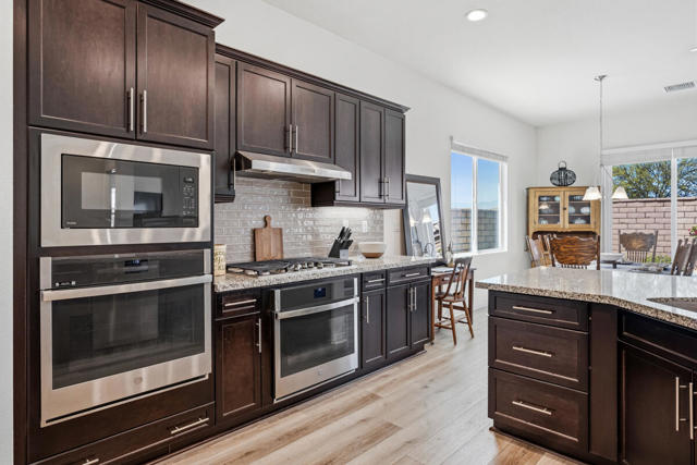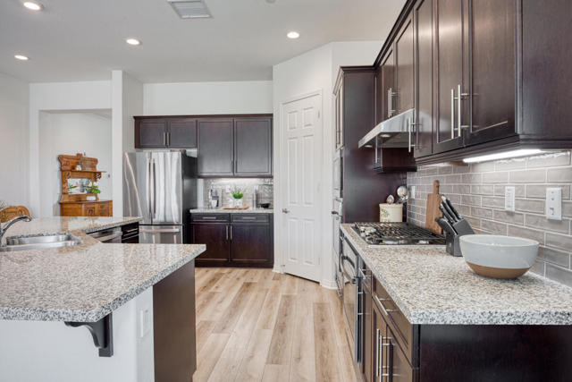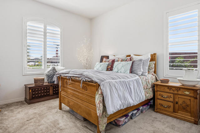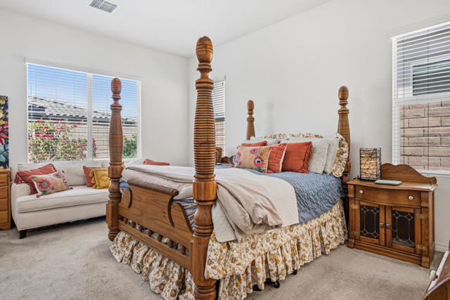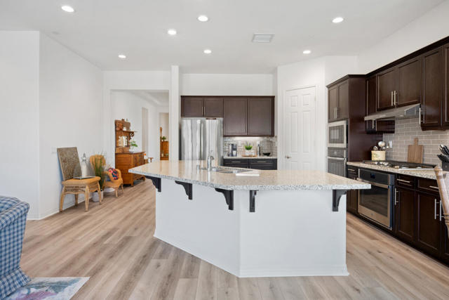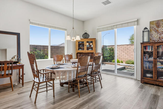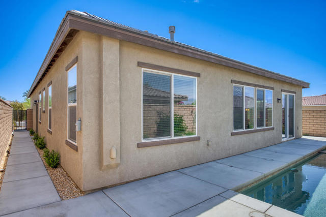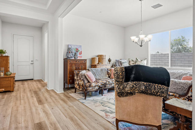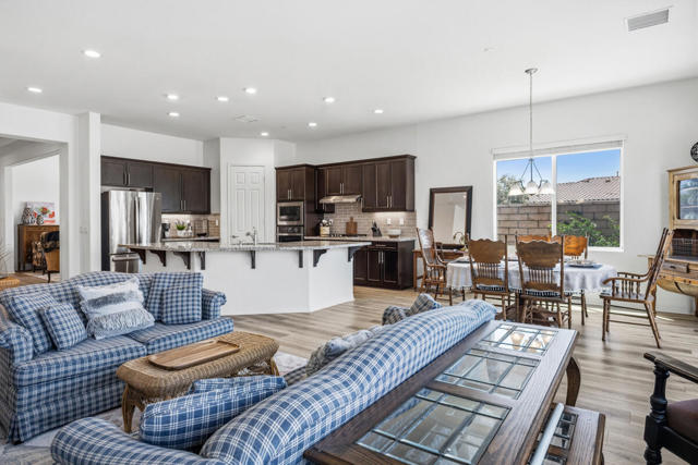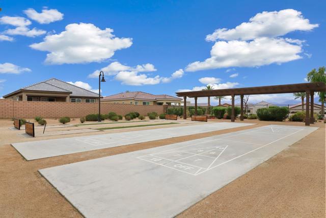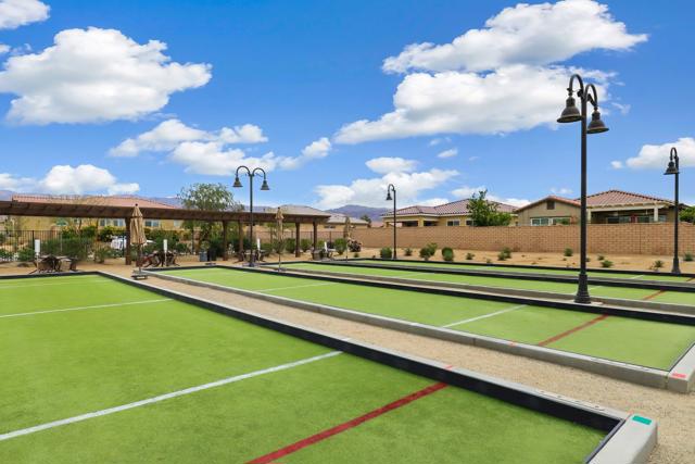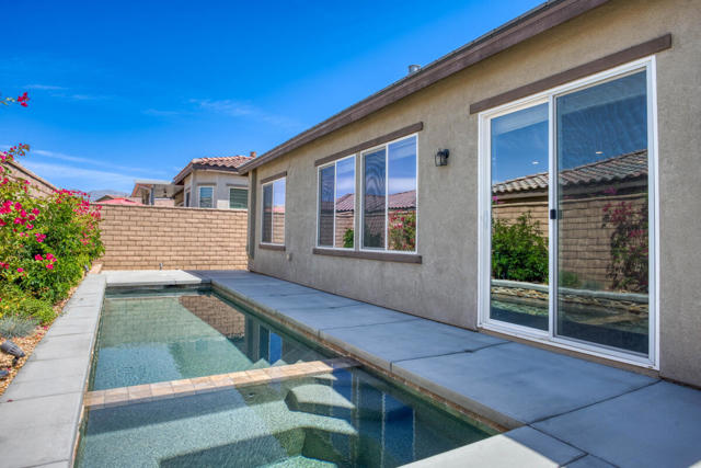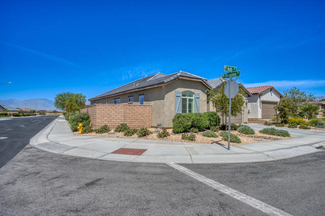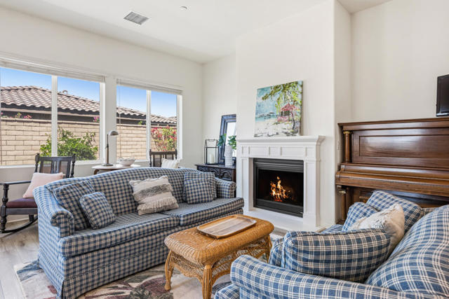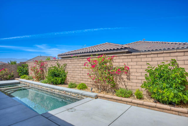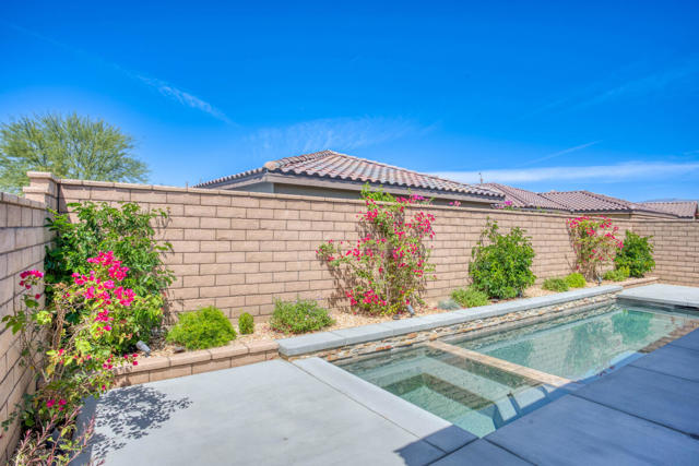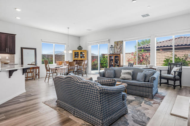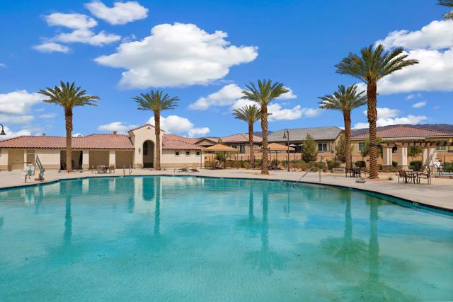 Welcome to resort living in the sought-after Four Seasons at Terra Lago, a guard-gated 55+ community in Indio. This beautifully upgraded single-level 2 bed, 2 bath home w/den (optional 3rd bedroom) is ideally situated on one of the community's most private premier lots--a cul-de-sac corner location w/a dog park just across the street. Inside, soaring ceilings & abundant natural light create a warm, inviting atmosphere. The chef's kitchen features quartz countertops, rich shaker cabinetry, custom glass tile backsplash, stainless steel appliances, a large walk-in pantry & a spacious eat-in island. With an open layout, the kitchen flows seamlessly into the dining & great rooms anchored by a gas fireplace--perfect for entertaining. Step outside to your private saltwater pool & spa, surrounded by low-maintenance desert landscaping & peaceful mountain views--ideal for relaxing or entertaining. The primary suite is a tranquil retreat with a spa-inspired bath, including a glass shower, soaking tub, dual vanities, & ample storage. On the opposite side of the home is a generously sized secondary bedroom & full guest bath. Luxury vinyl plank flooring, recessed lighting & an indoor laundry room complete the interior. A rare 3-car tandem garage provides exceptional storage. This home is perfection - modern, stylish & private -- the kind of home where you want to stay awhile & invite your friends and family to visit. Beyond your front door, the gated community includes a world-class resort. Take a dip in one of the indoor & outdoor pools, work out in the state-of-the-art fitness center, or indulge in a game of billiards w/friends. Don't miss the library, tech center, banquet hall, board room, hair salon & dance studio. All this with one low HOA fee! Close to the Coachella Music Festival, Spotlight 29 Casino, Fantasy Springs Resort & world-class golf at Eagle Falls and The Golf Club at Terra Lago -- fun & luxury are at your doorstep. You're also just minutes from the high-end shops & restaurants at El Paseo in Palm Desert or quaint Old Town La Quinta. This home is perfect as a full-time residence or a luxurious seasonal retreat.