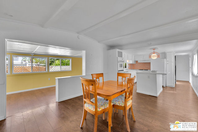 Charming home in the 55 + Community of Safari Park. Safari Park is tucked away is a quiet corner of Palm Springs with close up views of the mountains. This 2 bed 2 bath home features a large kitchen/dining area with an island with breakfast bar. The sunny and bright living room is a step away and has a wall of windows. There are two bedrooms one with a small bath, the second to the rear which uses the larger full bath. A large two car tandem carport is attached. Newer roof, water heater and HVAC system were all replaced recently. Some appliances should be replaced. Property sold in As is condition. The monthly lease includes the flat rates for water, trash and sewer. The mgmt. office sends out the monthly bills including all utilities. Electric and gas are variable depending on usage. Buyers must have Park approval, office open daily from 9-12pm.
