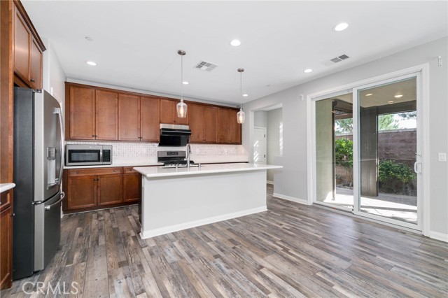 Beautiful two story home located in the gated community of Harvest at The Preserve. This home features 3 bedrooms, 2.5 bathrooms, open floor plan, wooden cabinets, Quartz Countertops with center island, full backsplash and stainless steel appliances. The backyard has a covered patio with motorized screen shade, ideal for enjoying the outdoors stay without the bugs. A beautiful designed backyard with no neighbor behind. Upstairs has a loft to add flexible functionality, such as a home office or a playroom. The property has water softener system that protects plumbing and appliances from costly scale damage. The community has swimming pools, indoor gym and parks. Highly rated Chino Valley School District. Conveniently located near the Town center at The Preserve.