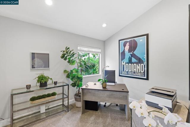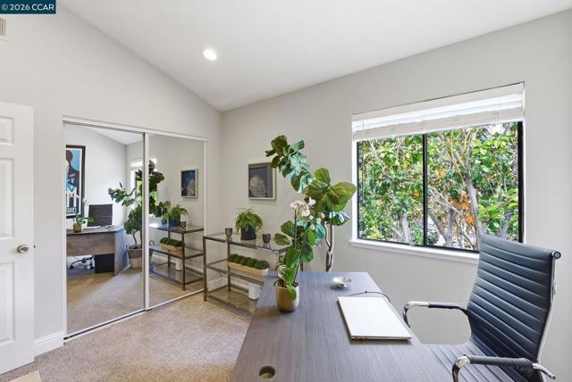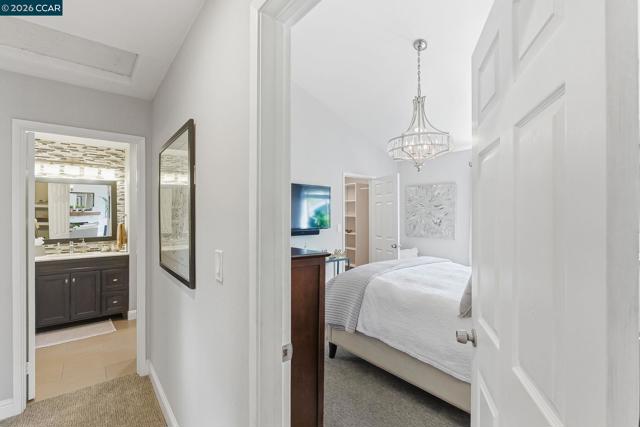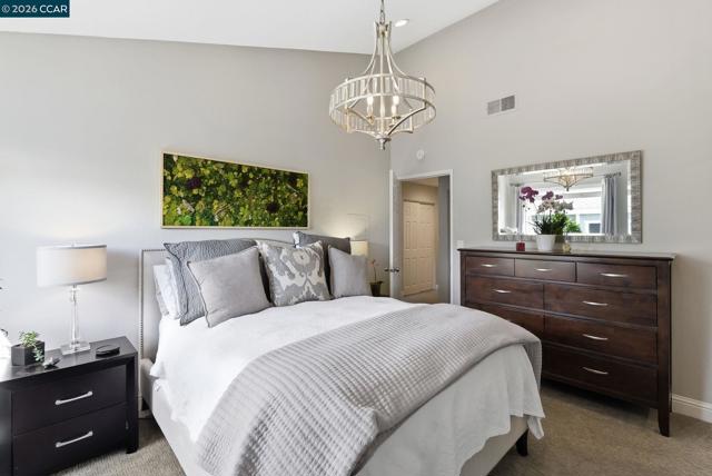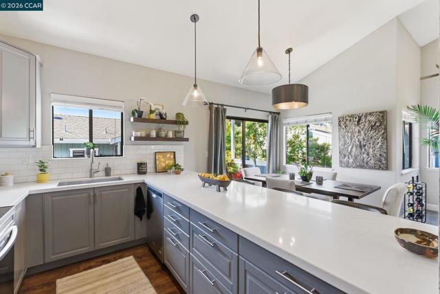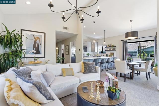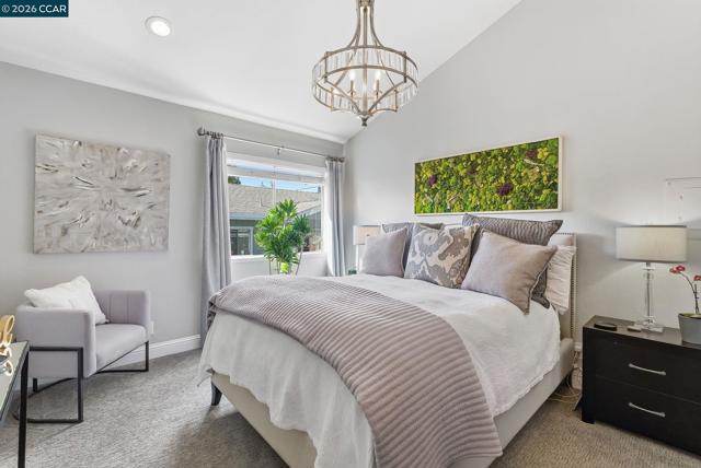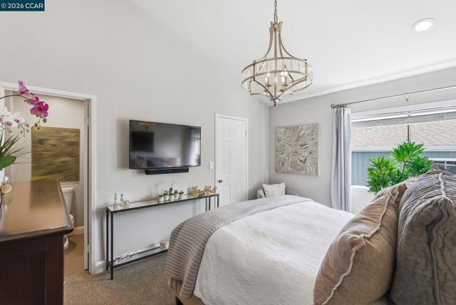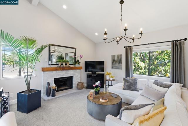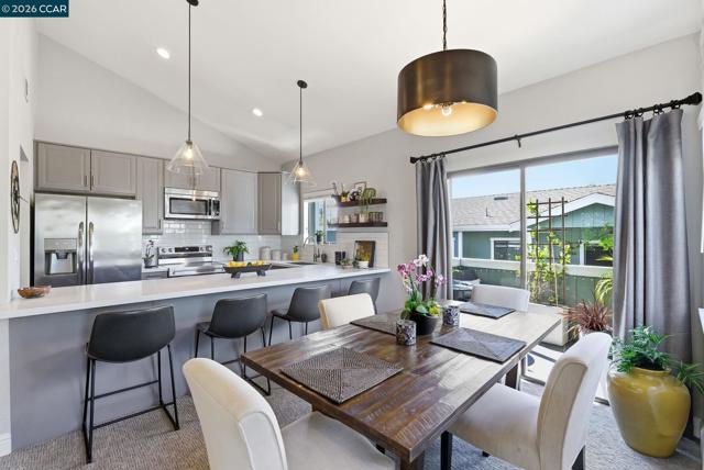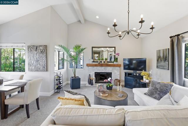 Step into this beautiful, light-filled Penthouse Condominium where style and comfort come together effortlessly. Designer finishes and custom lighting throughout add a touch of elegance, while the cozy gas fireplace place creates the perfect setting for relaxing evenings at home. Soaring cathedral ceilings and an open-concept design create a bright, airy atmosphere that feels both expansive and inviting. The spacious walk-in closet offers both convenience and a sense of everyday luxury. Enjoy your own private deck—an ideal retreat for morning coffee, fresh air, or a small garden oasis. Just beyond your door, the community pools offer a peaceful escape, perfect for unwinding and enjoying sunny days. Additional highlights include a private garage with ample storage and a dedicated parking space for ultimate convenience. Ideally located near the charm and vibrancy of downtown Martinez, with easy access to Highways 4 and 680, this home places you close to shopping, dining, and everything you need—while still offering a peaceful place to come home to.
