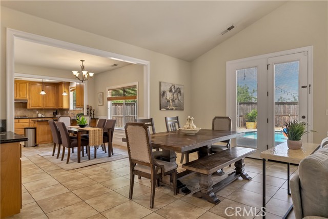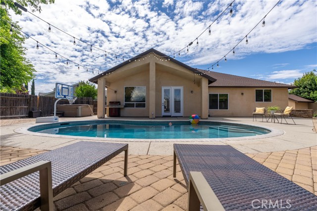 Walking through the courtyard and opening the gorgeous front door you will be greeted by open living areas filled with natural light soaring ceilings complemented by a functional layout that seamlessly connects the kitchen, dining and living spaces. Whether you are hosting gatherings or enjoying a quiet night in, this home offers the flexibility and comfort today's buyers are looking for. The kitchen is an entertainers dream with plenty of cabinetry, stainless steal appliances, granite counters a walk in pantry, wet bar and a sitting bar. All the rooms are large and the primary en-suite offers a walk in closet, soaking tub and walk in shower. Step outside and experience your own private backyard retreat complete with a sparkling pool, perfect for those warm Chico summers and a hot tub for the cool evenings. The patio is covered and there is plenty of room to create your own space for outdoor living. Located in a desirable neighborhood close to parks, schools and all that Chico has to offer. Do not miss your opportunity to own this exceptional property.