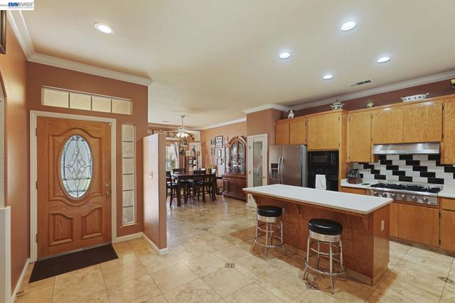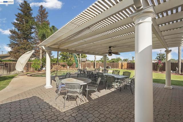 PRIVATE OASIS IN MODESTO. Nestled on over a ¼-acre lot with no rear neighbors, this property offers the perfect blend of privacy and comfort. The backyard feels like your own private oasis, complete with a PebbleTec pool and spa, expansive paver patio, and space for large gatherings. Mature fruit trees add charm and functionality to the outdoor setting. Inside, enjoy a well-appointed layout featuring a formal dining room, spacious laundry room, and a kitchen equipped with a 6-burner stove, ideal for cooking and entertaining. The inviting living space is anchored by a cozy gas fireplace, perfect for relaxing evenings at home. A covered front porch welcomes you, while the spacious 3-car garage provides ample storage and convenience. All this, with privacy, space, and close proximity to shopping and everyday amenities.