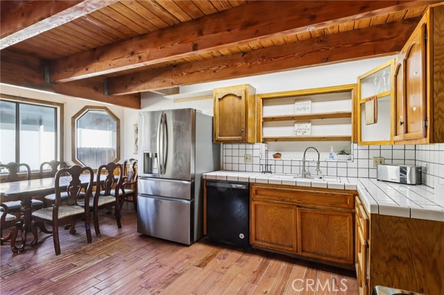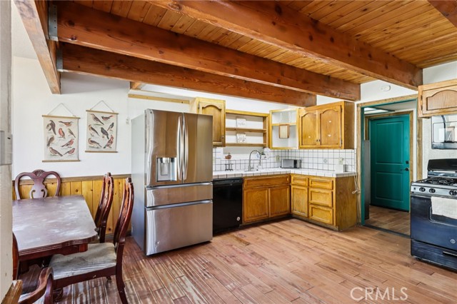 Welcome to this character-filled home offering space, versatility, and beautiful mountain views of both Bear Mountain and Gold Mountain. Set on a large, fully fenced lot with a spacious driveway and attached 2-car garage, this property provides both privacy and functionality. A standout feature is the downstairs bedroom suite, complete with its own bathroom, kitchenette, and separate handicap/wheelchair-accessible entrance—ideal for multigenerational living, guests, or potential rental income. A Junior ADU permit has been applied for and is currently in process, adding even more value and opportunity. Inside, the home is rich with charm, featuring beamed pine ceilings and classic wainscoting. The inviting living room is centered around a cozy wood stove with a brick surround and hearth. The open kitchen and dining area are filled with natural light, creating a warm and welcoming space for everyday living. Go outside to enjoy both a front deck and backyard patio—perfect for relaxing, entertaining, and taking in the peaceful surroundings. Upstairs, you’ll find generously sized bedrooms, including two that share a Jack-and-Jill powder room, along with a second primary suite featuring its own en-suite full bathroom. With its flexible layout, unique character, and scenic setting, this home offers a wonderful opportunity for a variety of living arrangements.