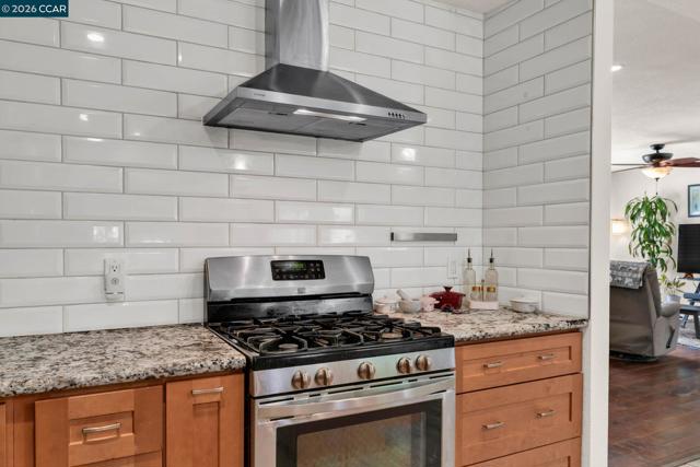 Gorgeous single-story, east-facing home in the highly desirable Tree Haven subdivision, featuring a spacious open floor plan that perfectly blends comfort and functionality. From the moment you arrive, you’ll be captivated by the beautifully designed low-maintenance landscaping accented with vibrant pavers, creating exceptional curb appeal. Step inside and feel instantly welcomed by the bright, open layout that flows effortlessly throughout the home. Elegant flooring guides you into the dining and kitchen area, where you’ll find a modern kitchen equipped with stainless steel appliances and a perfectly positioned center island—ideal for both everyday living and entertaining. As you make your way toward the bedrooms, you’ll notice thoughtful upgrades throughout, including plantation shutters, dual-pane windows, and more. Both bathrooms have been tastefully updated, with the primary bathroom offering a luxurious jetted tub for a spa-like retreat plus its separate stall shower. The backyard is truly a standout feature—an expansive space filled with endless possibilities, whether you envision building an ADU, adding a swimming pool, or creating your own private garden oasis.This home is only 8 minutes away from BART .