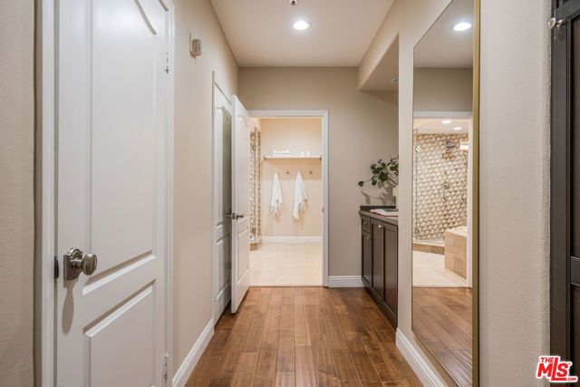 Located in one of Brentwood's most prestigious full-service buildings, this beautifully updated residence offers generous scale with thoughtful, modern upgrades throughout. This 2-bedroom, 2.5-bathroom home spans 1,730 SF of intentionally designed living space. Double doors open to an entry that leads into an expansive living space, where hardwood floors and recessed lighting create a warm yet elevated atmosphere. The open layout has been thoughtfully enhanced by the removal of a dividing wall, allowing for a seamless connection between the kitchen, dining, and living areas, all flowing effortlessly to a private patio. Completed in 2025, the redesigned kitchen is both functional and striking, featuring custom cabinetry, new countertops and backsplash, all-new stainless steel appliances, a pot filler, and a built-in cup washer. It connects naturally to a dedicated dining area with a built-in bar and wine cooler, ideal for both everyday living and entertaining. Designed for privacy and comfort, the two-bedroom suites are positioned on opposite ends of the residence. The spacious primary suite offers dual walk-in closets with custom cabinetry and direct access to a second private patio. Both bathrooms have been updated with new vanities, while the primary bath also includes a soaking tub and separate shower. Additional highlights include a new HVAC system installed in 2022, in-unit laundry, video intercom, two assigned parking spaces, and extra storage. Residents enjoy a full suite of amenities at the Excelsior, including a pool, spa, sauna, gym, recreation room, and abundant guest parking, all just moments from Brentwood's best dining, shopping, and everyday conveniences.