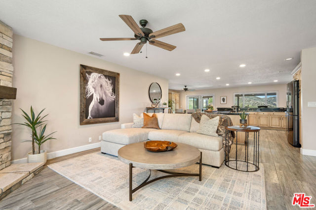 NO SHOWINGS UNTIL 4/17. Welcome to an extraordinary equestrian retreat in the highly sought-after Bridle Path community of Simi Valley, where miles of riding trails, arenas, and scenic mountain surroundings create a lifestyle unlike any other.Located at 1218 Nonchalant Drive, this beautifully renovated property blends refined luxury with true equestrian functionality. Spanning just over 2,700 square feet, the home offers four bedrooms, three bathrooms, and a spacious bonus room ideal for a media room, home office, gym, or playroom. Since purchasing the home, the owners have invested over $300,000 in extensive upgrades, transforming the residence inside and out into a truly turnkey showpiece. Thoughtful design, quality craftsmanship, and custom finishes are evident throughout, creating light-filled living spaces that flow effortlessly for both everyday comfort and entertaining. The outdoor setting is nothing short of spectacular. The backyard is a private resort featuring a beautifully designed pool and spa, custom lighting, lush landscaping, and a stunning elevated deck that overlooks the entire property and opens to canyon views with breathtaking nightly sunsets. The deck is an entertainer's dream, complete with a built-in high-end barbecue, refrigerator, storage, and generous seating area perfect for gatherings large or small. A large glass fire pit anchors an expansive seating area below, creating the perfect place to unwind under the stars. For the equestrian enthusiast, the property is exceptionally well-equipped with a four-stall barn featuring automatic waterers for added convenience and care. Each stall includes an impressive 15x30-foot attached run, offering generous space and comfort for the horses. The barn is thoughtfully designed and includes a dedicated hay barn, tack room, wash rack with water heater, and extensive space for storage and organization. Additional features such as an automatic fly spray system and misters enhance both care and comfort year-round. A spacious adjacent turn-out area allows for daily movement and turnout, while the impressive 60-foot round pen provides an ideal setting for training and exercise. A charming chicken coop adds character and functionality, and the expansive grounds provide both privacy and versatility. The lot is completely flat an incredibly rare find in this community making it 100% usable and maximizing flexibility for horses, recreation, and entertaining. RV access currently accommodates a 40-foot RV, offering flexibility for recreational vehicles, trailers, or additional storage needs. This is the perfect property for the discerning buyer seeking a luxury home that supports an active equestrian lifestyle without sacrificing comfort, style, or outdoor entertaining. 1218 Nonchalant Drive offers the rare opportunity to enjoy horses, sunsets, and resort-style living all in one exceptional setting.