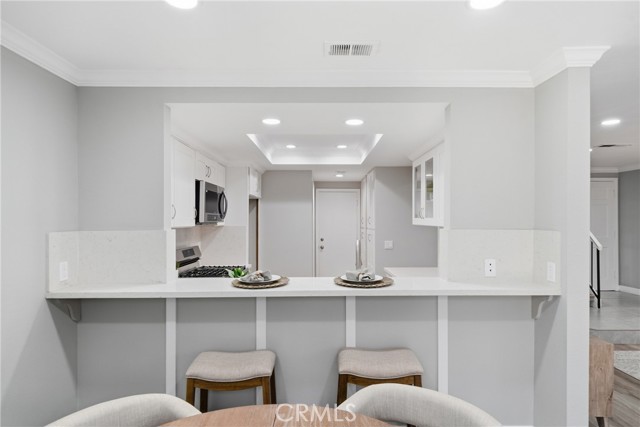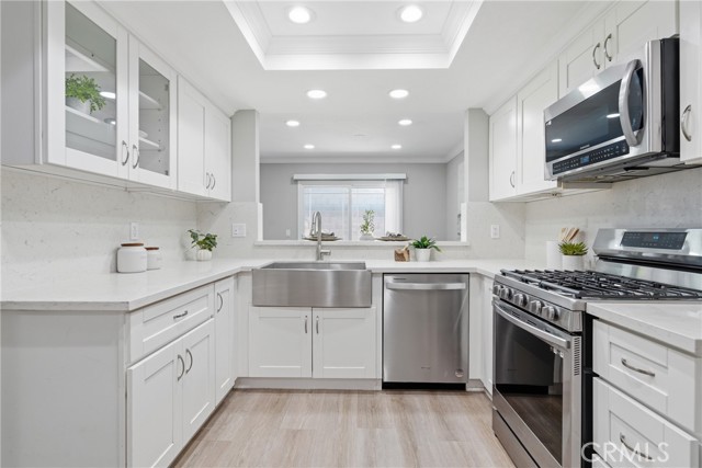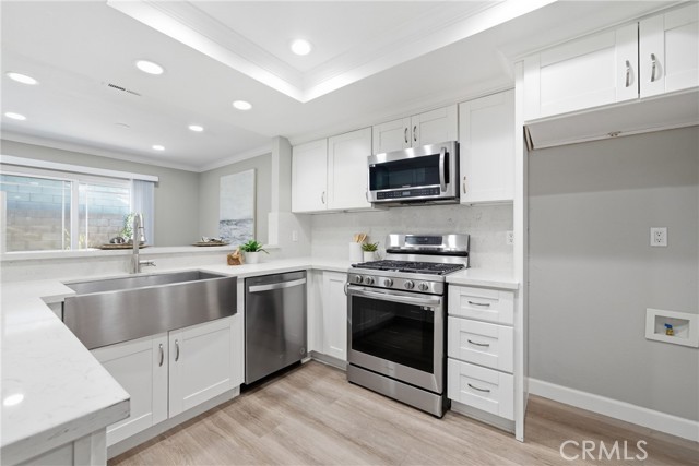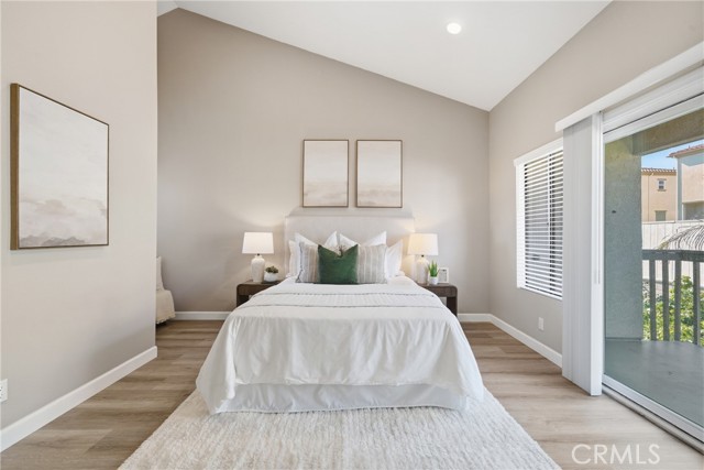 Welcome to 7113 Brentwood Lane, a beautifully upgraded two-story attached single-family home nestled in a charming Westminster community. Offering 3 bedrooms, 2.5 bathrooms, and 1,422 square feet of thoughtfully designed living space on a 1,872 square foot lot, this home combines comfort, style, and functionality. Step inside to an inviting open-concept floor plan featuring laminate flooring, fresh interior paint, recessed lighting, and a neutral color palette throughout. The spacious living room is anchored by a cozy gas fireplace, creating the perfect setting for relaxing or entertaining. The updated kitchen is both modern and functional, showcasing newer cabinetry, quartz countertops, and stainless steel appliances, all seamlessly flowing into the main living areas. Upstairs, you’ll find all three bedrooms, including a spacious primary suite designed for comfort and retreat. The primary bedroom features vaulted ceilings, abundant natural light, and a private balcony deck. The en-suite bathroom has been tastefully remodeled with floating dual vanities, a walk-in shower with a sleek glass sliding door, and elegant tile finishes. The hallway bathroom has also been beautifully updated with dual vanities, a shower-tub combination with glass enclosure, and a stylish tile backsplash. Enjoy outdoor living in the private backyard—ideal for relaxing, dining, or entertaining. Additional highlights include a direct-access side-by-side 2-car garage and a spacious 2-car driveway, offering ample parking and convenience. Located in a quaint and well-maintained community, residents enjoy access to amenities including a pool, spa, and restrooms. Conveniently situated near shopping, dining, and major freeway access, this home offers the perfect blend of lifestyle and location. Don’t miss the opportunity to make this move-in ready home your own.