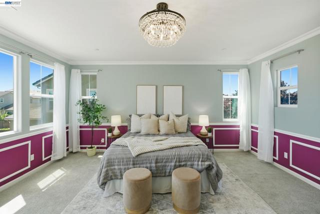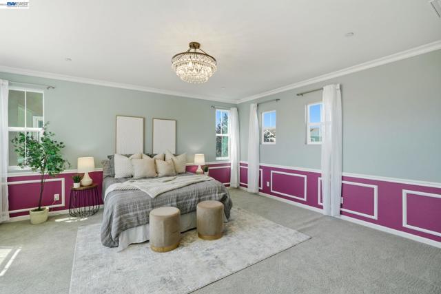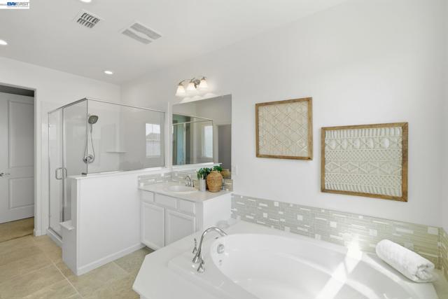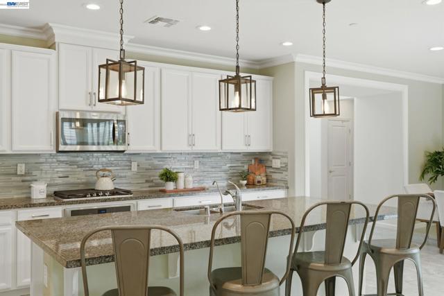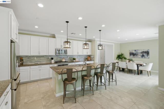 Welcome to this stunning 4-bedroom, 3-bath home built in 2017, located in Tracy’s highly desirable Ellis community. Offering over 3,000sqft of modern living space, this home features an open-concept layout with spacious rooms, raised ceilings, and a functional design perfect for everyday living and entertaining. The chef’s kitchen is a standout, complete with a large island, granite countertops, breakfast bar, stainless steel appliances, abundant cabinetry, an eat-in dining area, and a butler’s pantry leading to the formal dining room. The kitchen flows seamlessly into the family room and out to the beautifully maintained low-maintenance backyard. A full bedroom and bathroom downstairs provide ideal flexibility for guests or multi-generational living. Upstairs, you’ll find a versatile loft, two additional bedrooms, and a luxurious primary suite featuring a large walk-in closet and spa-like bath with dual vanities, soaking tub, and separate shower. Enjoy outdoor living with a covered patio, firepit, and artificial turf play area. Leased solar helps keep energy costs down. Located near Village Green Park, Ellis dog park, and within the sought-after Jefferson School District, with a new K-8 school and shopping plaza coming soon—this is one you don’t want to miss!